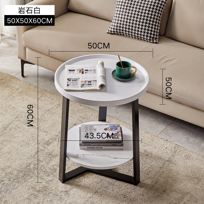 Light luxury small apartment living room coffee table simple modern household round double-layer side table bed and breakfast hotel sofa small side table
