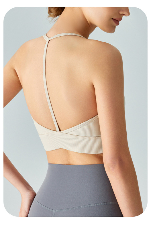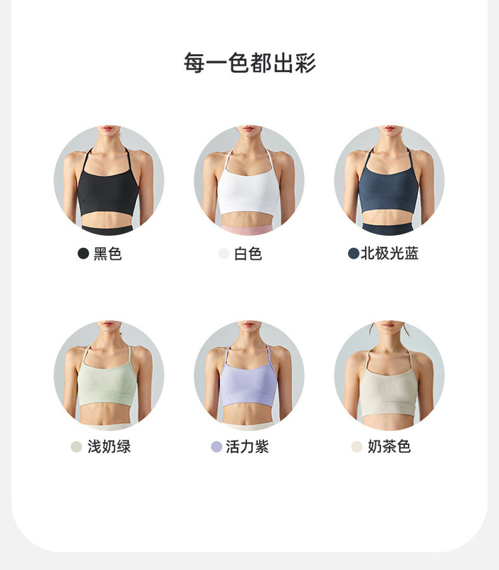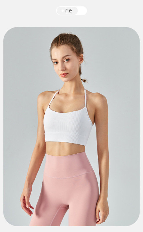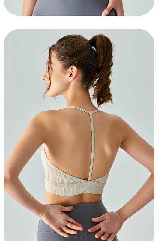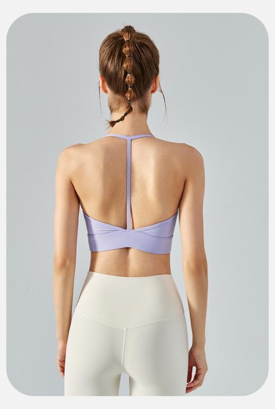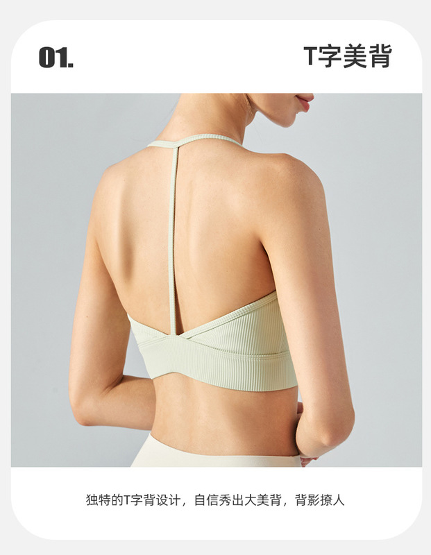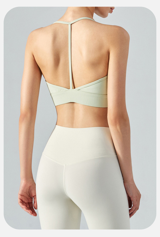 - Product attributes: Mid-intensity halter neck T-shaped beautiful back yoga vest sports bra
