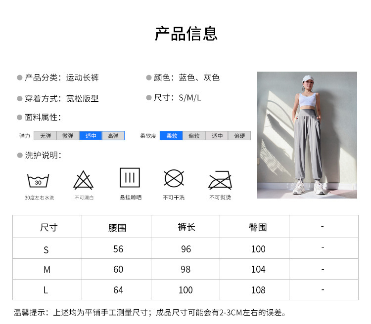 - Bottoms style: Loose legged pants