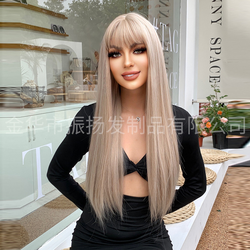 - Wig hairstyle: long straight hair with bangs