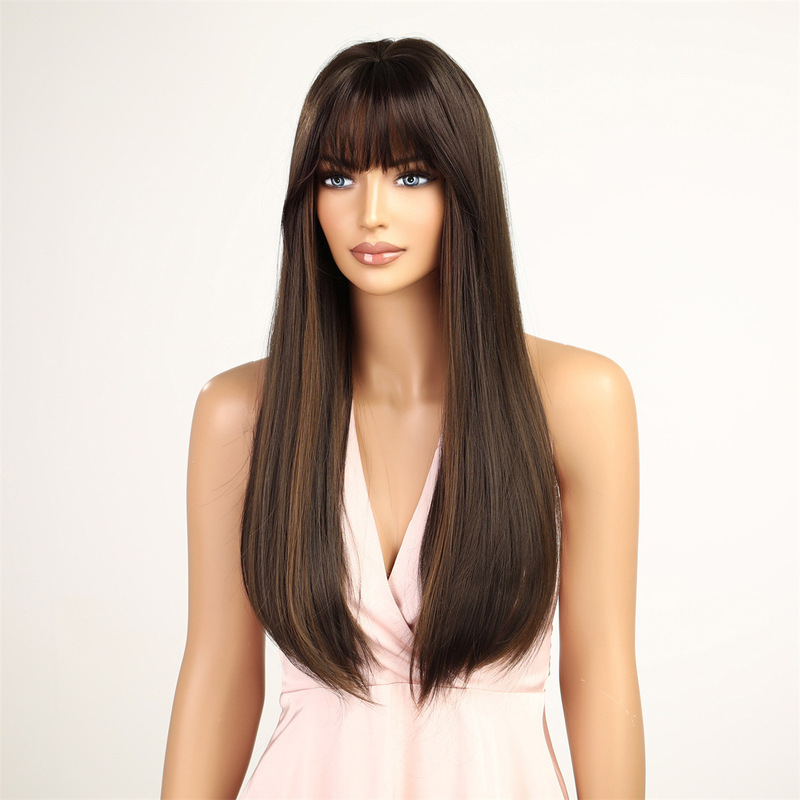 - Wig Style: Long straight hair with a straight bang