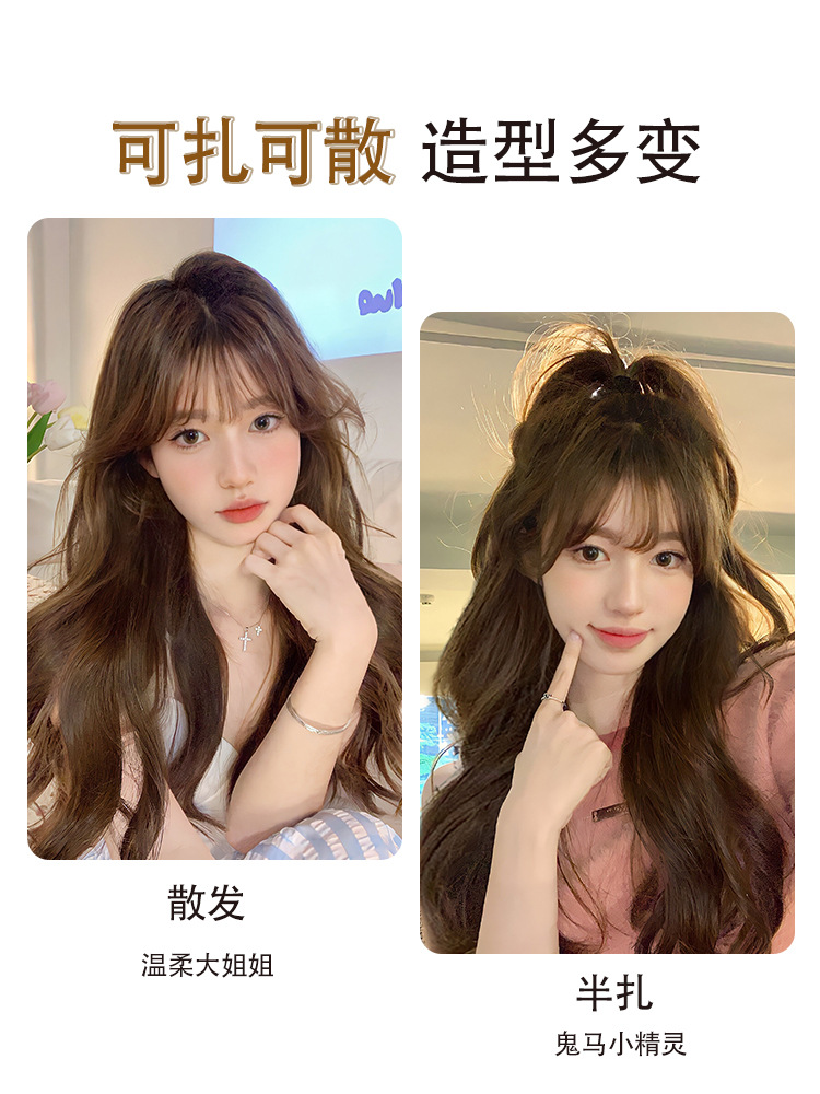 - Wig Style: Long Wavy Hair with Bangs