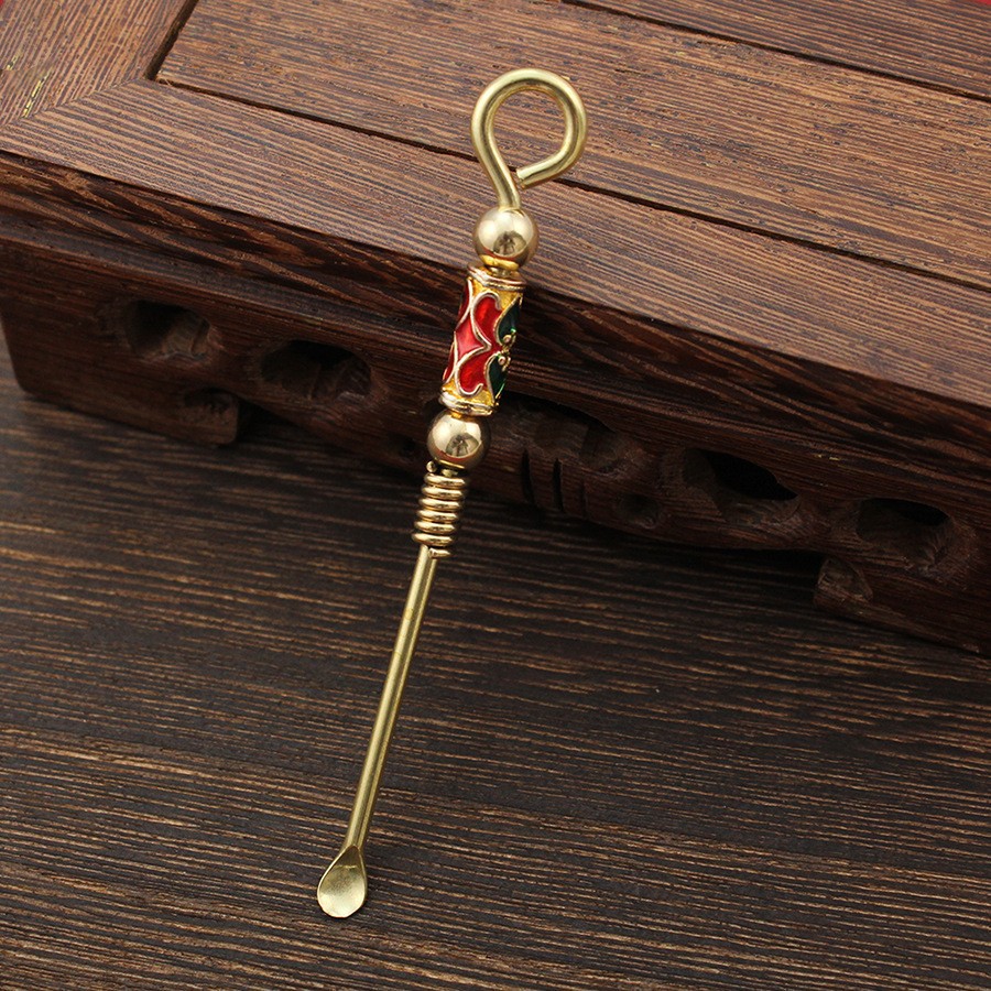- Specifications: Carved copper ear spoon-[red and green glue]