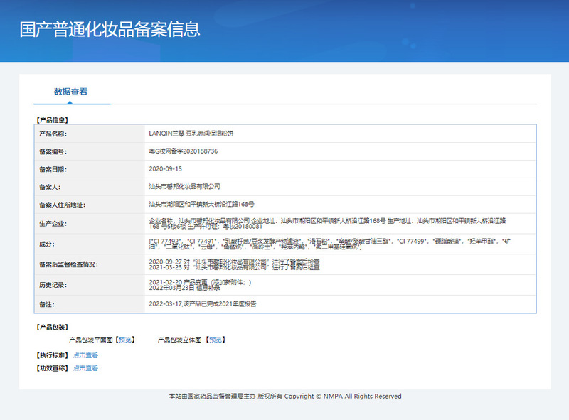 - Non-special cosmetics registration certificate number: Guangdong G makeup network registration number 2023191914
