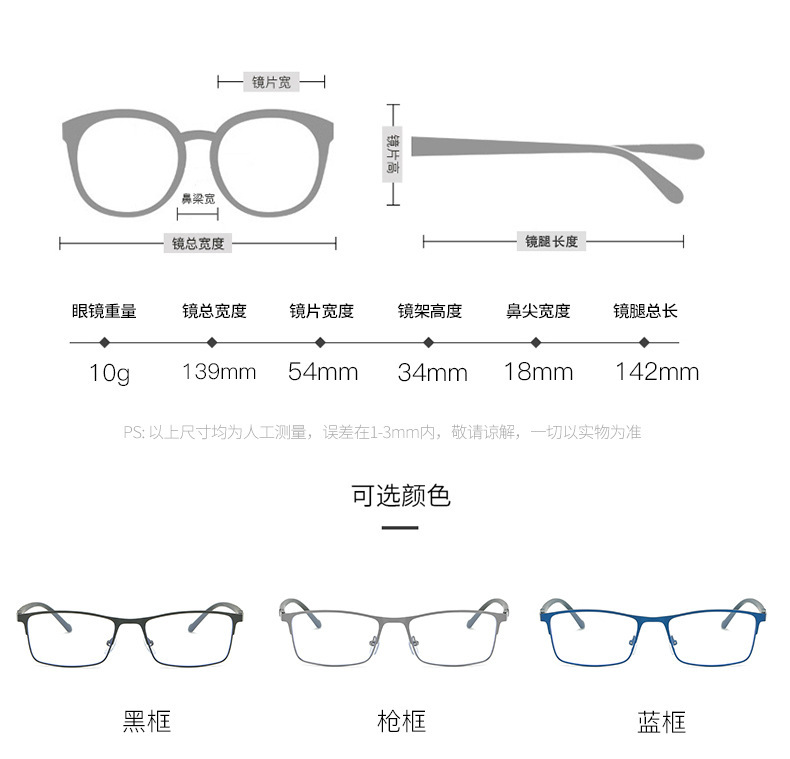 - Lens: Anti-blue light myopia 50 degrees
