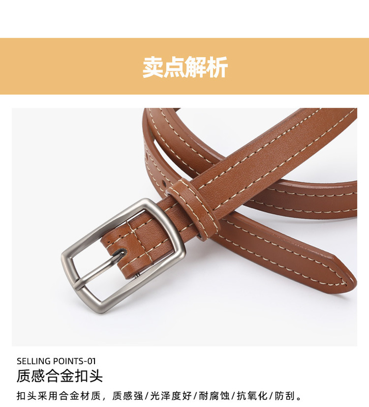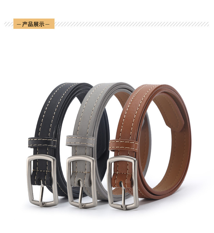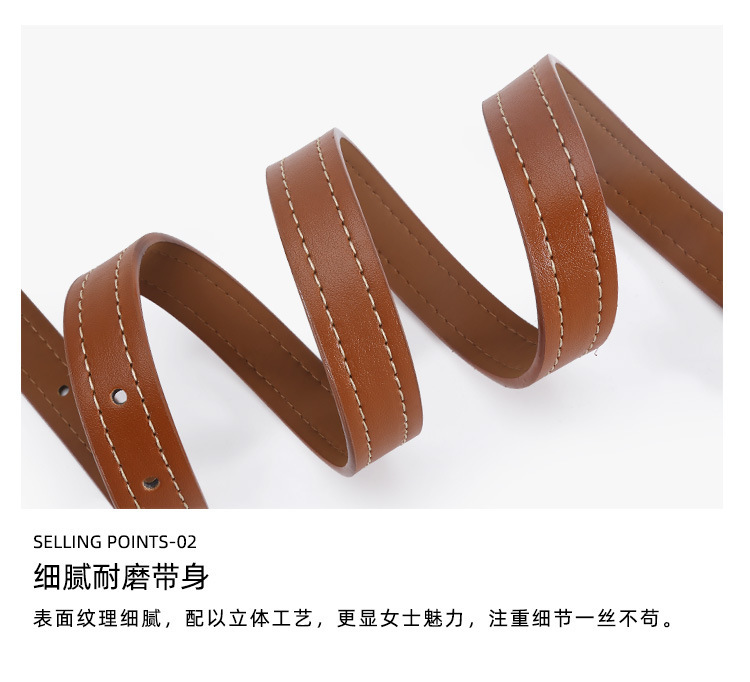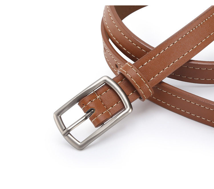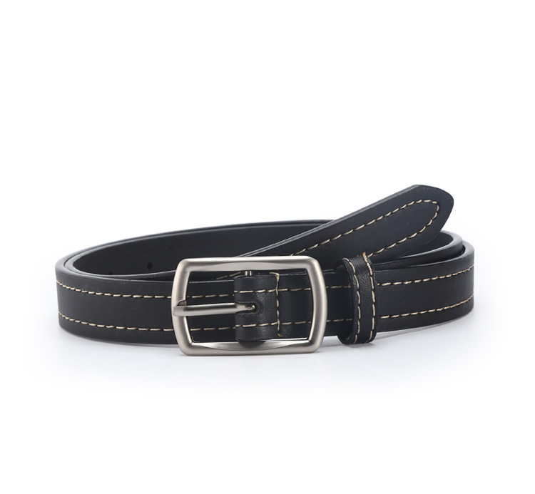 - Design Details: Square Buckle with White Thread Embellishment