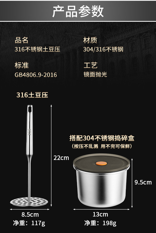 - Specifications: 304 mini potato press