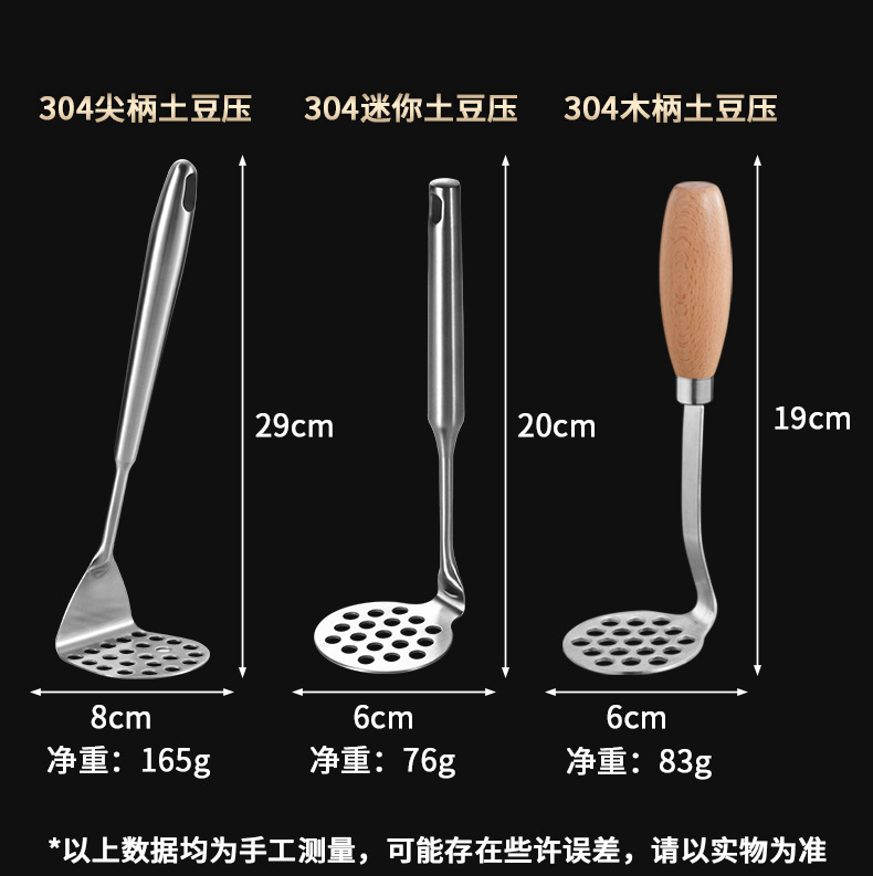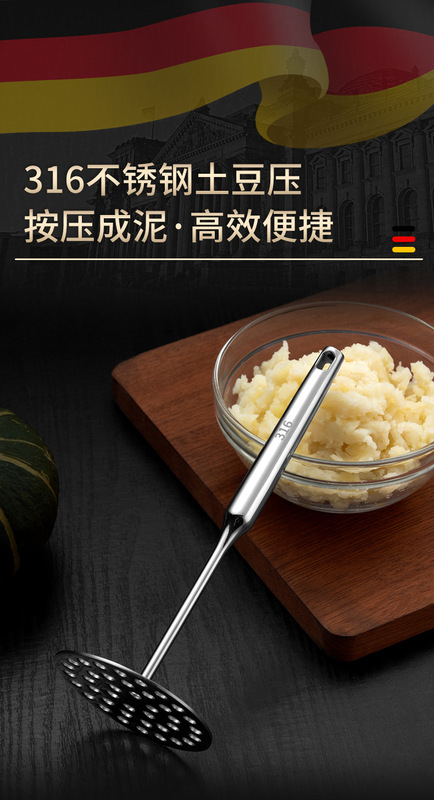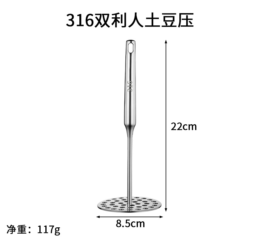 - Specifications: 304 large potato press (pointed handle)