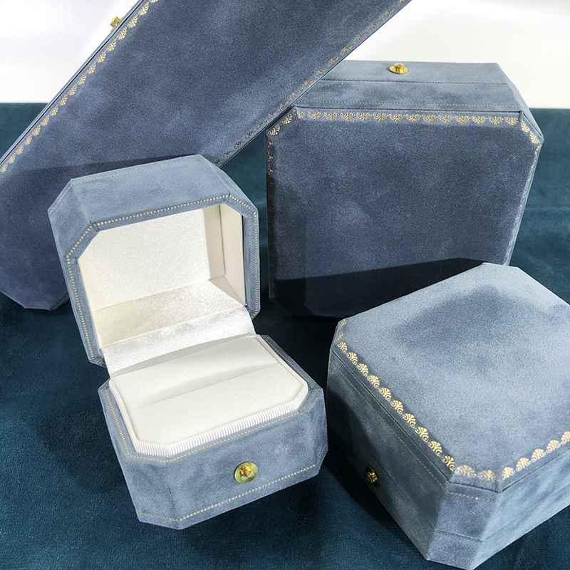 - Model Specification: Color: Lake Blue Ring Box; Specification: Octagonal Flocked Fabric Box