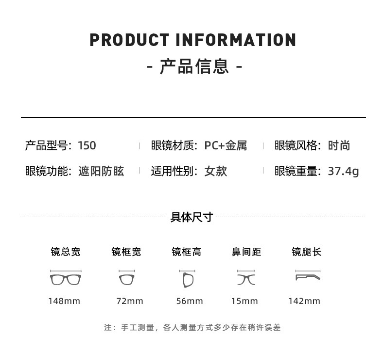 - Transmittance Classification: 2 types / Sunglasses