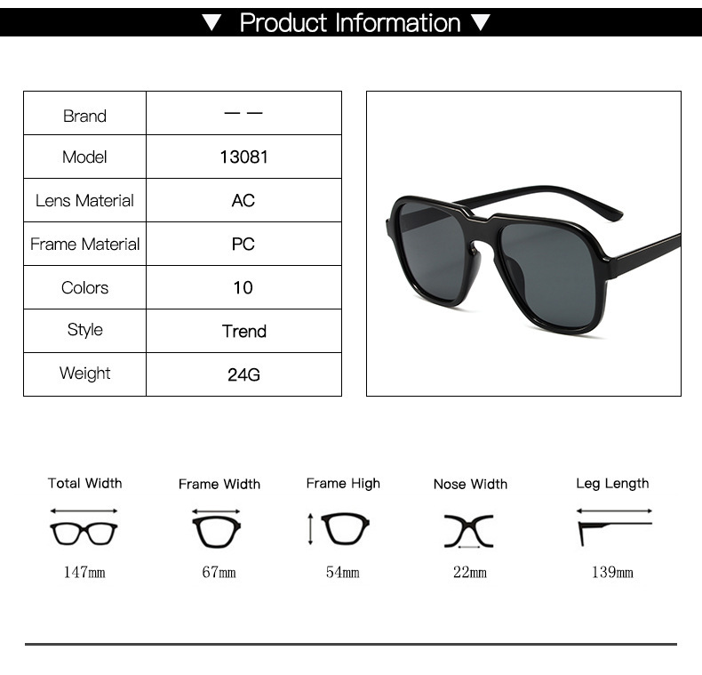 - Transmittance classification: 2 categories / Sunglasses