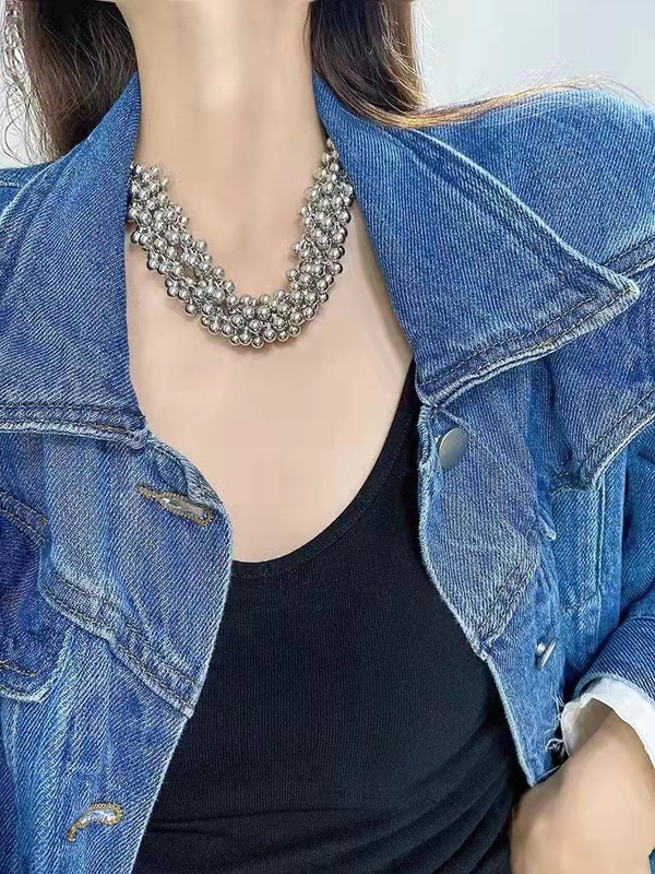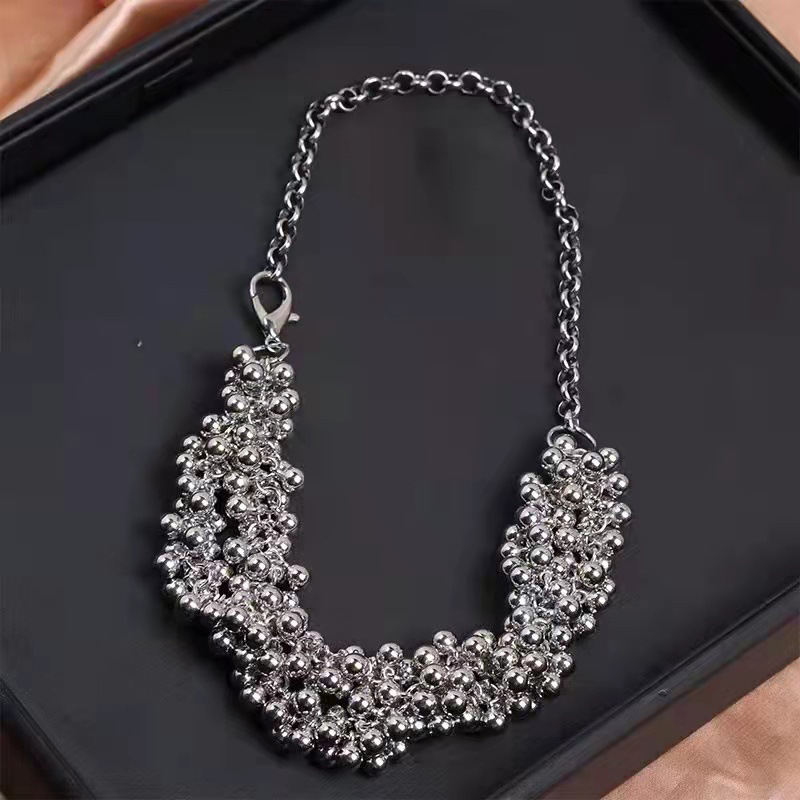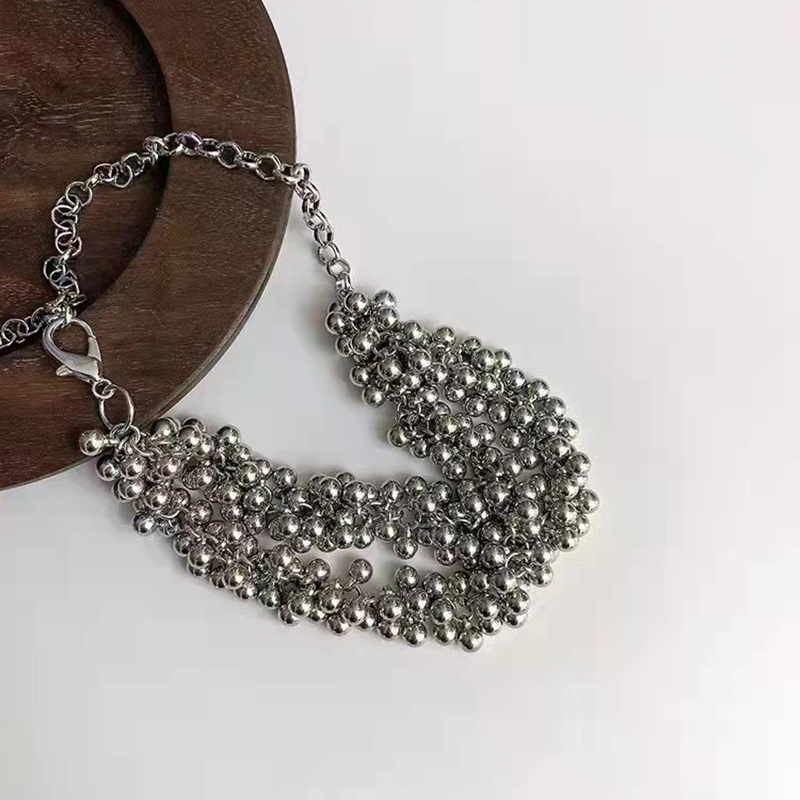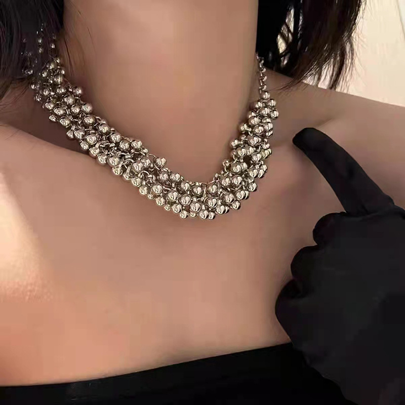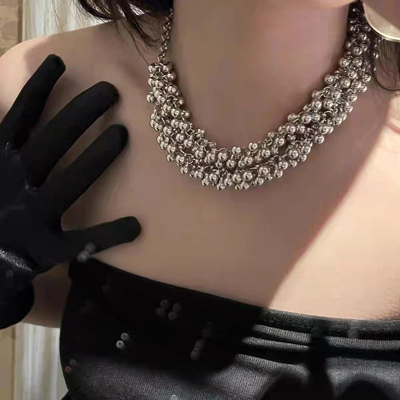 - Accessories Necklace Bestseller: Influencer's Same Style Metal Ball Necklace for Women, Exaggerated Personality Double Layer Multi-Ball Crescent Chain Stackable Lockchain Trendy