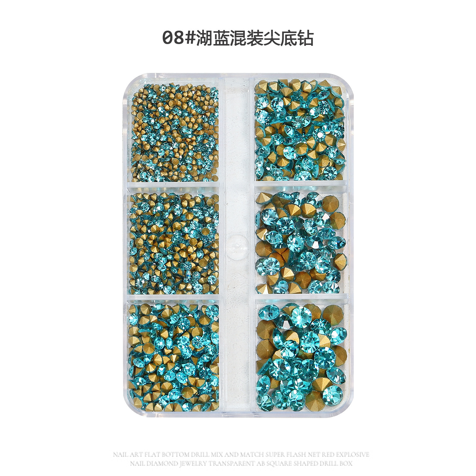 - Specification: 08# Six-Grid Pointed Lake Blue