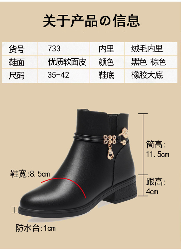 - Insole Material:人造短毛绒 Artificial Short Fleece