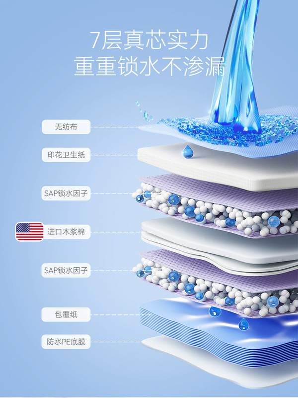 - Material: fluff pulp, non-woven fabric, SAP polymer, PE film, hot melt glue