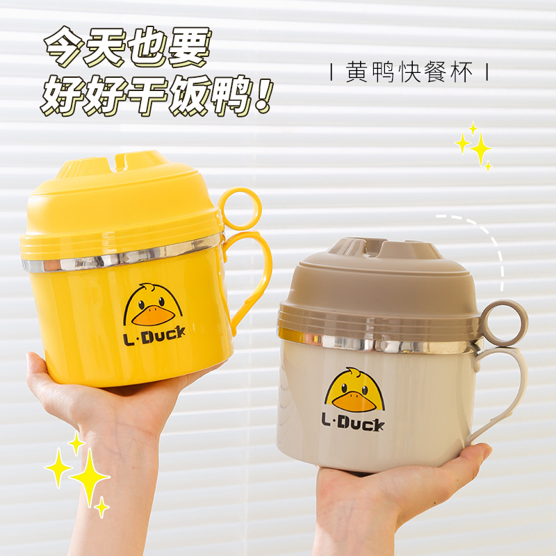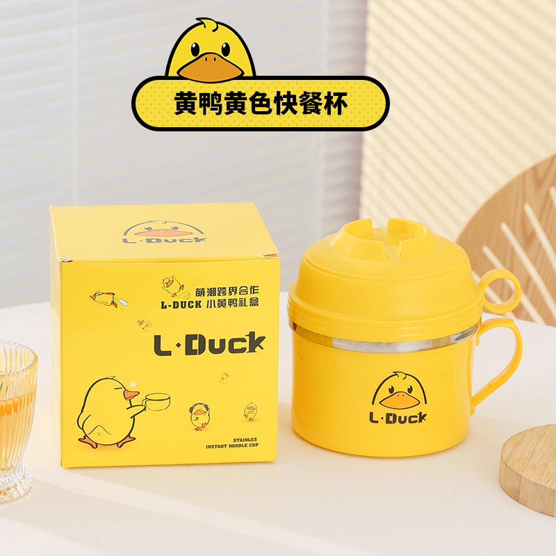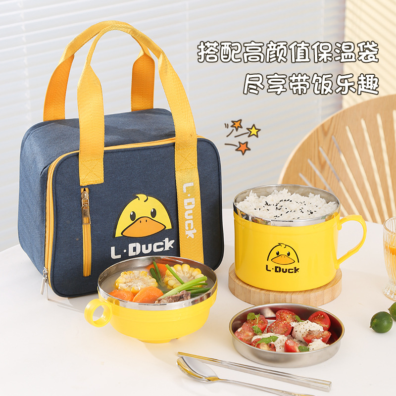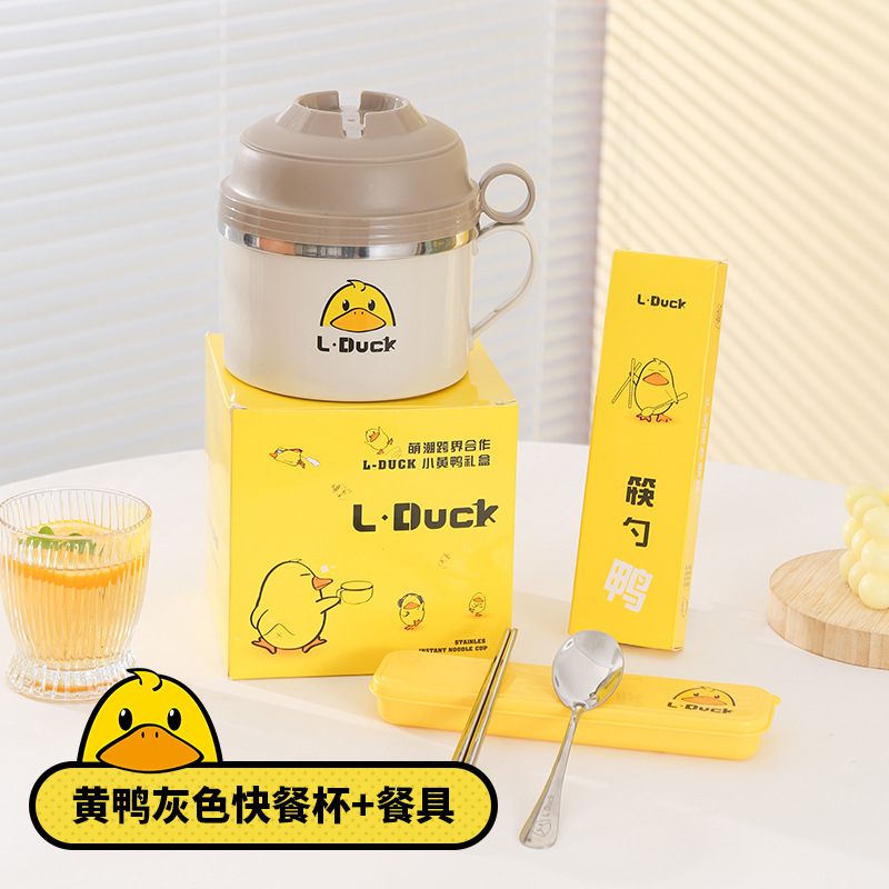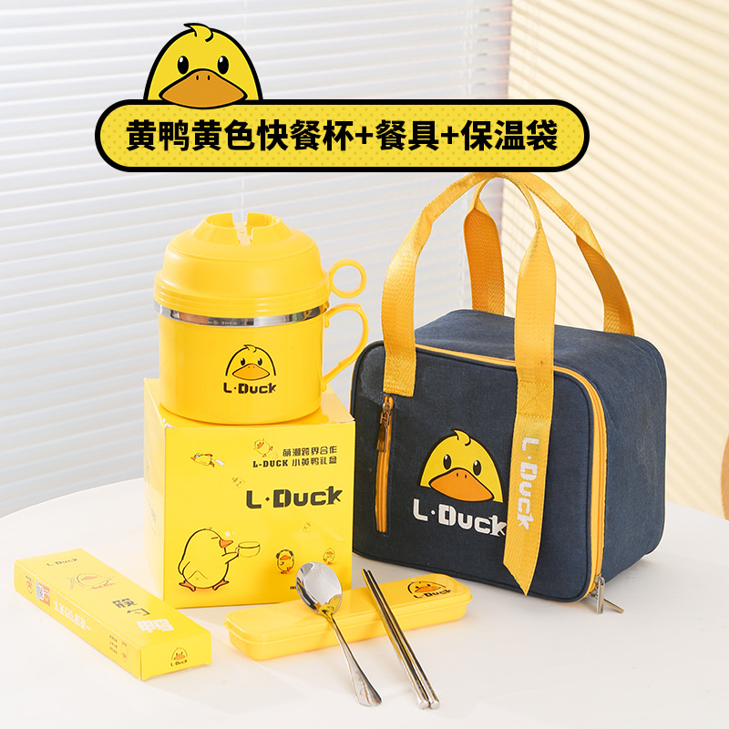 - Specification: Yellow Duck Fast-Cook Cup Stand [Yellow + Three-Piece Tableware Set + Insulated Bag Blue Small]