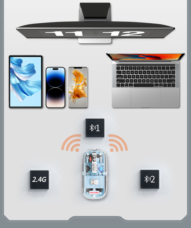 - Connection method with computer: 2.4G+Bluetooth