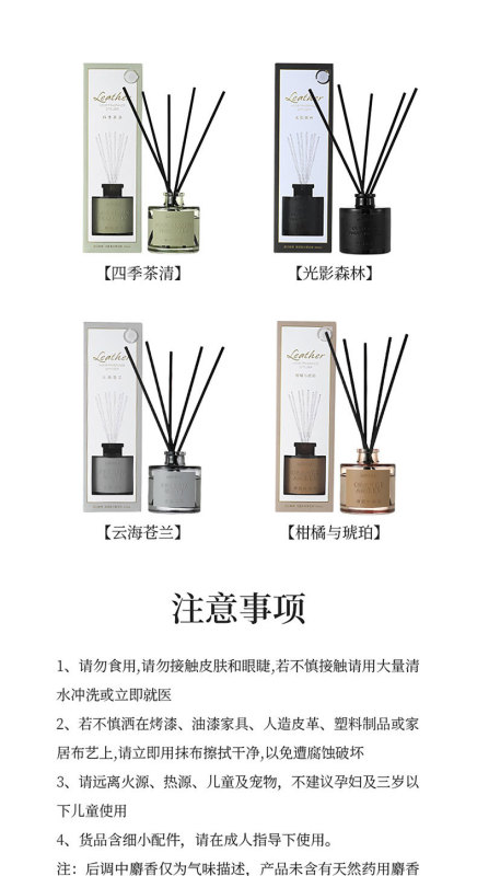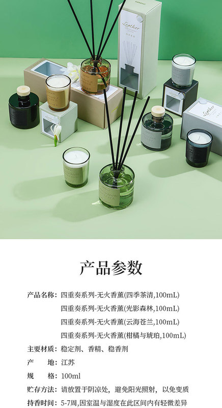 - Fragrance type: Four Seasons Cha Qing (fire-free aromatherapy, 100ml)