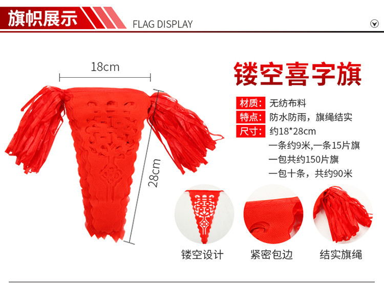 - Specifications: Hollowed-out auspicious character flag (about 90 meters per pack)