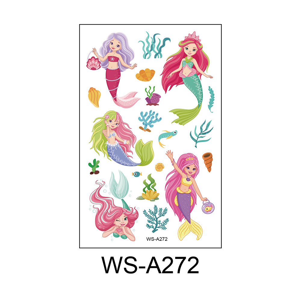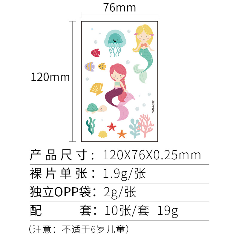 兒童卡通美人魚紋身貼粉色公主防水可愛趣味一次性獎勵貼紙