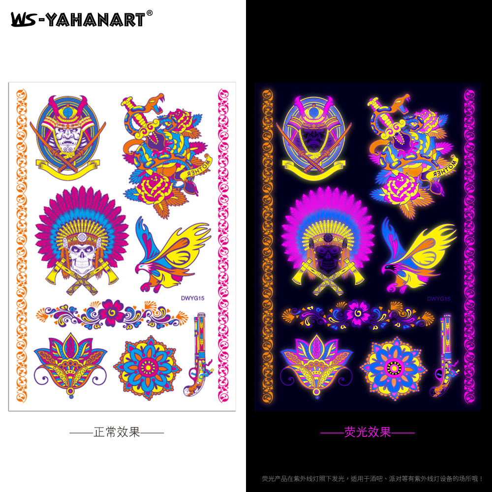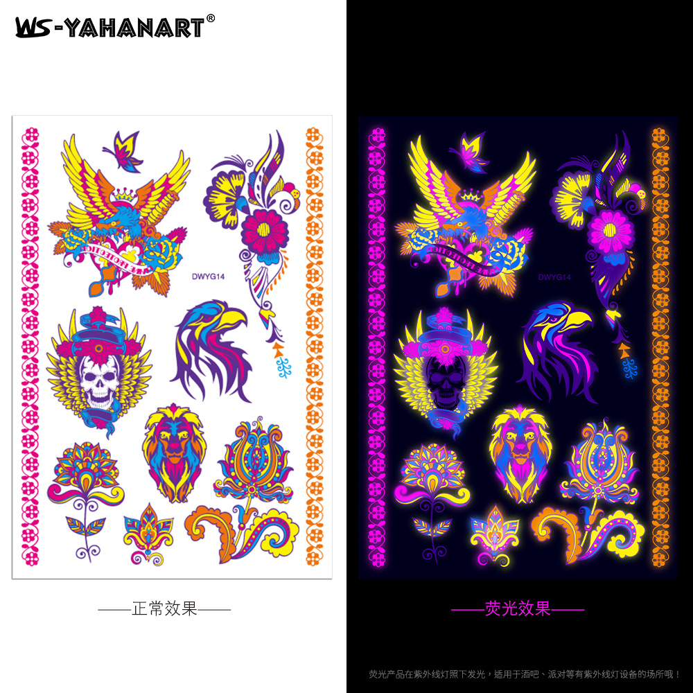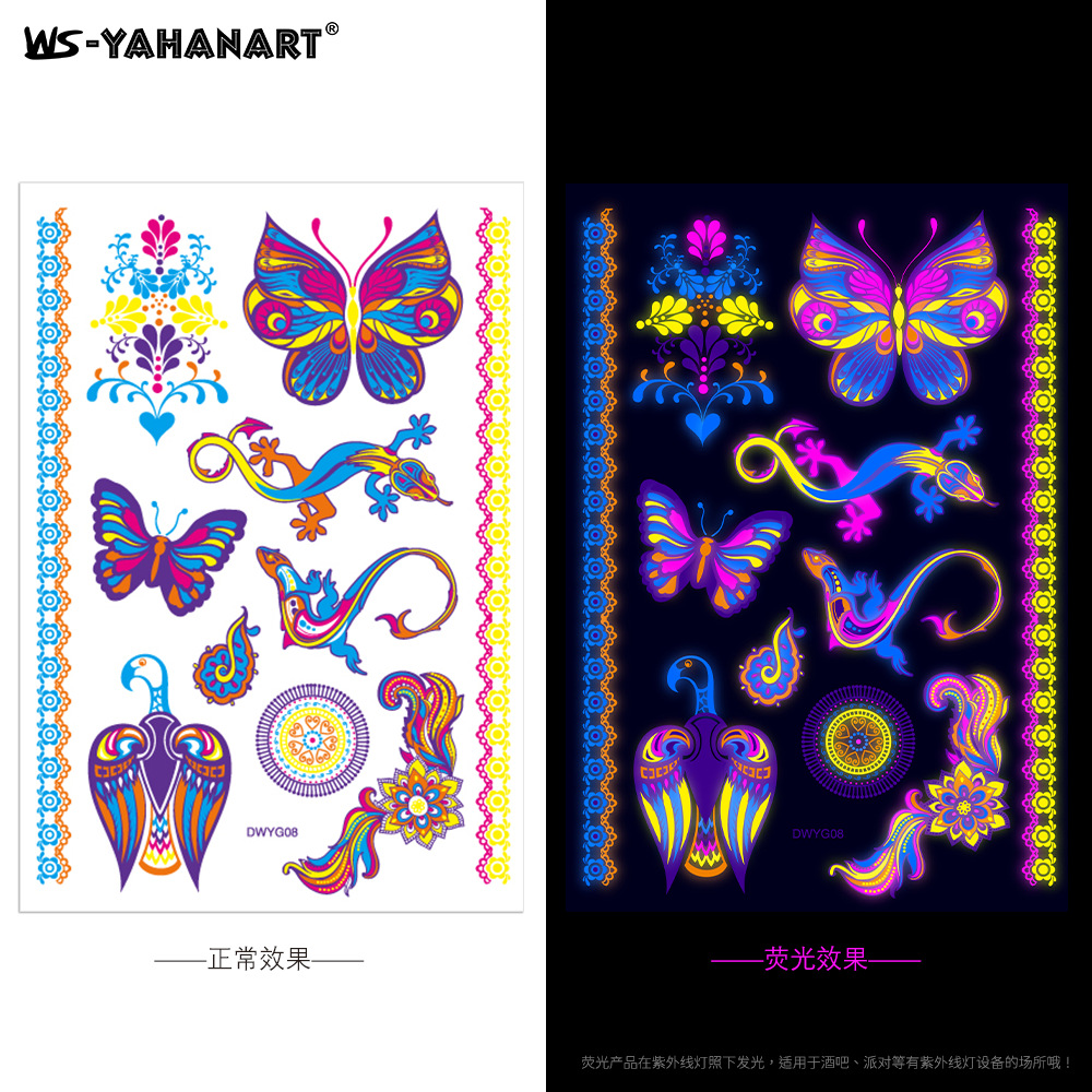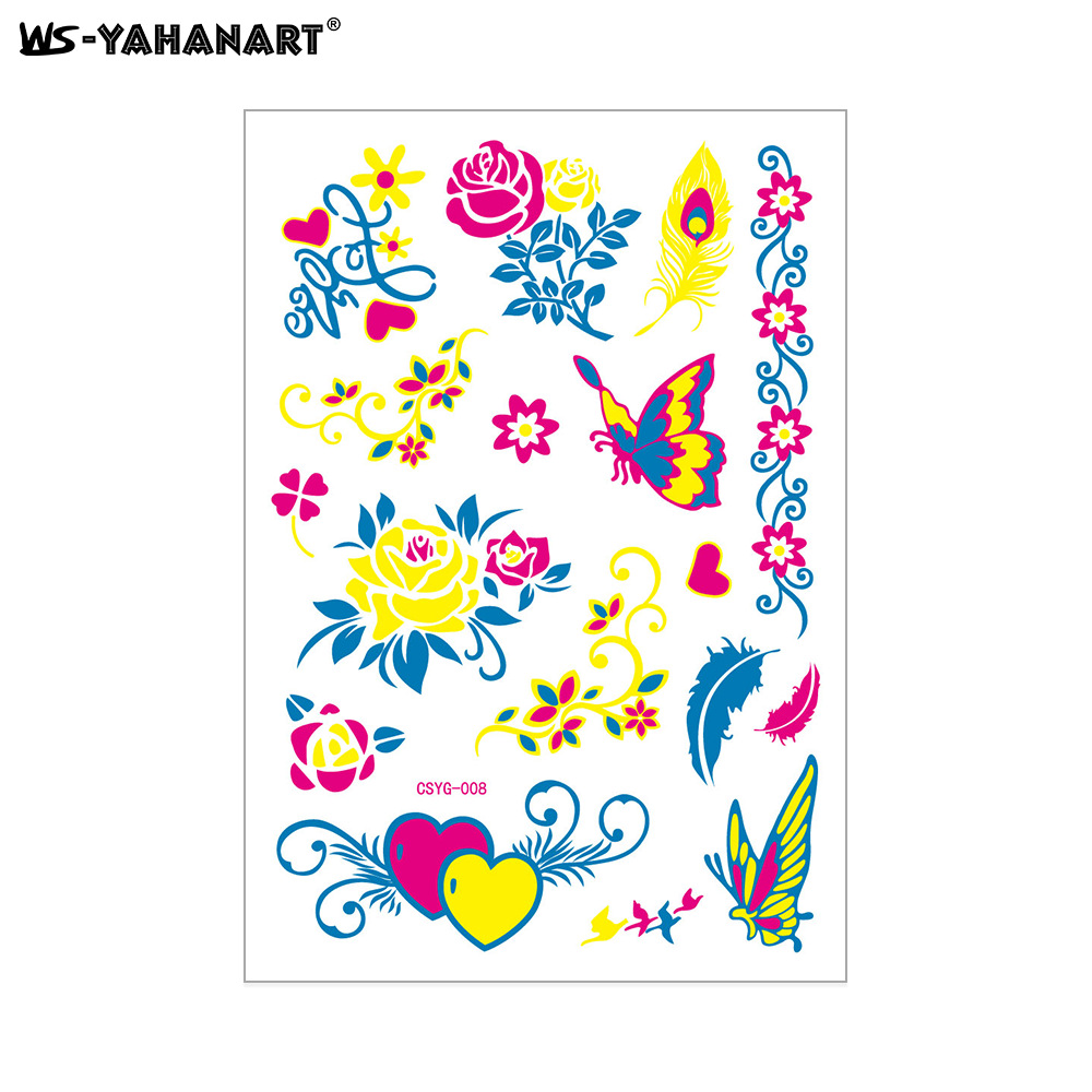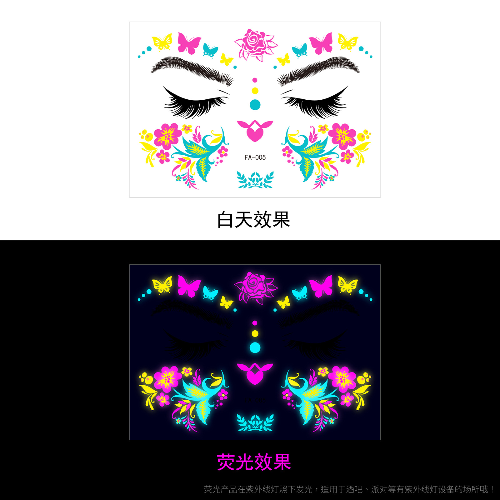 - Pattern: (take 8 photos in a set) Fluorescent face sticker FY001-008 combination set