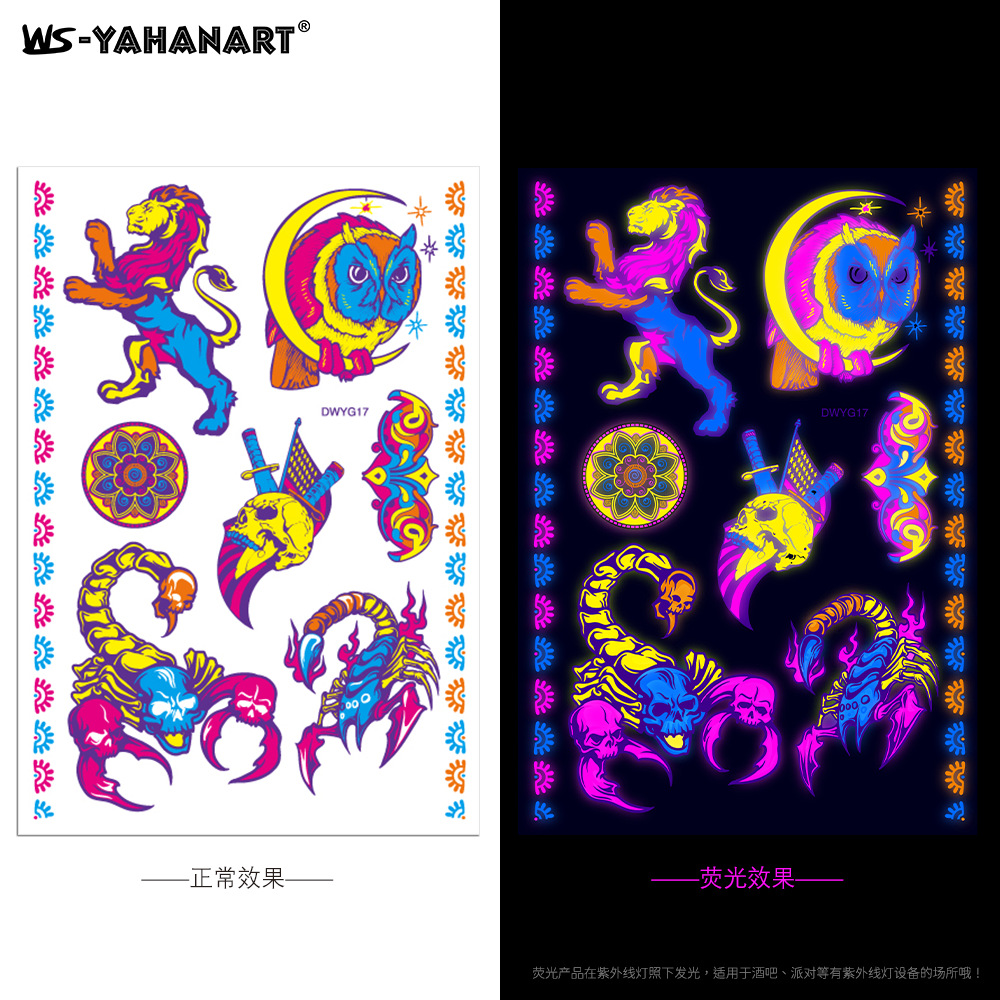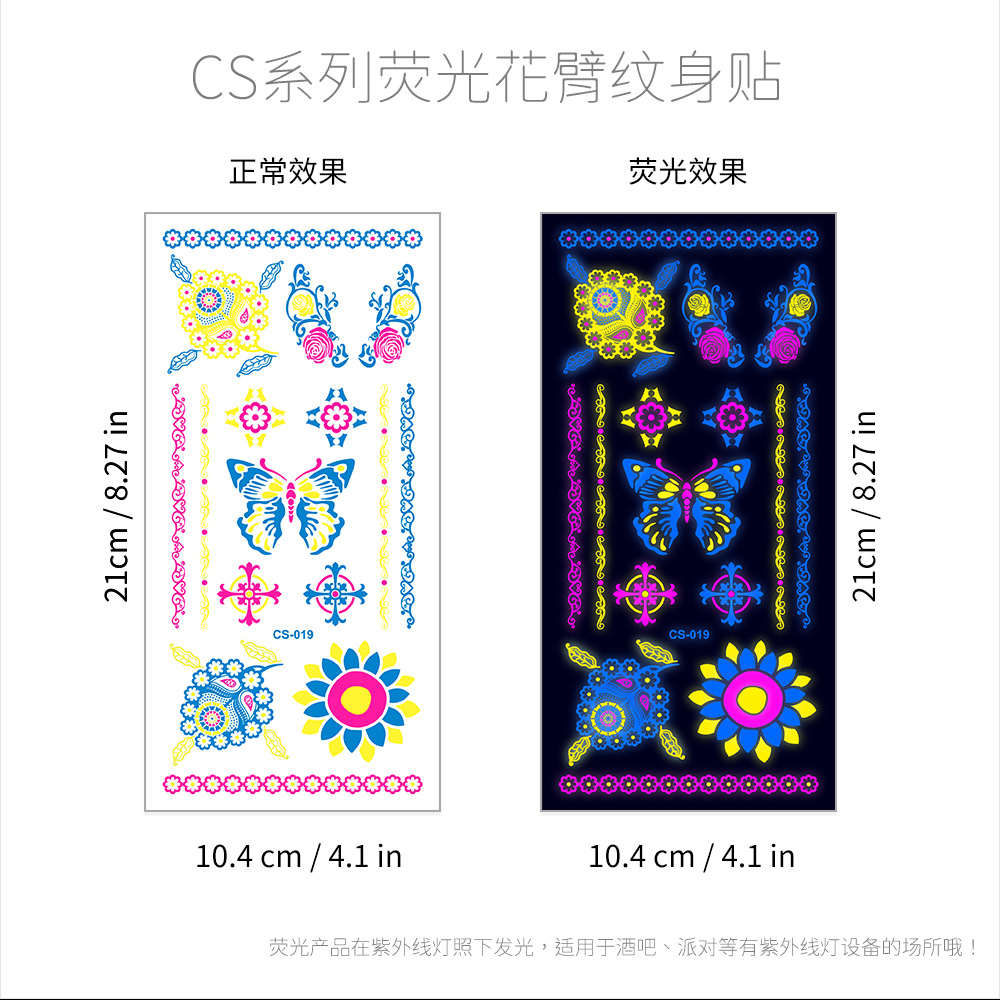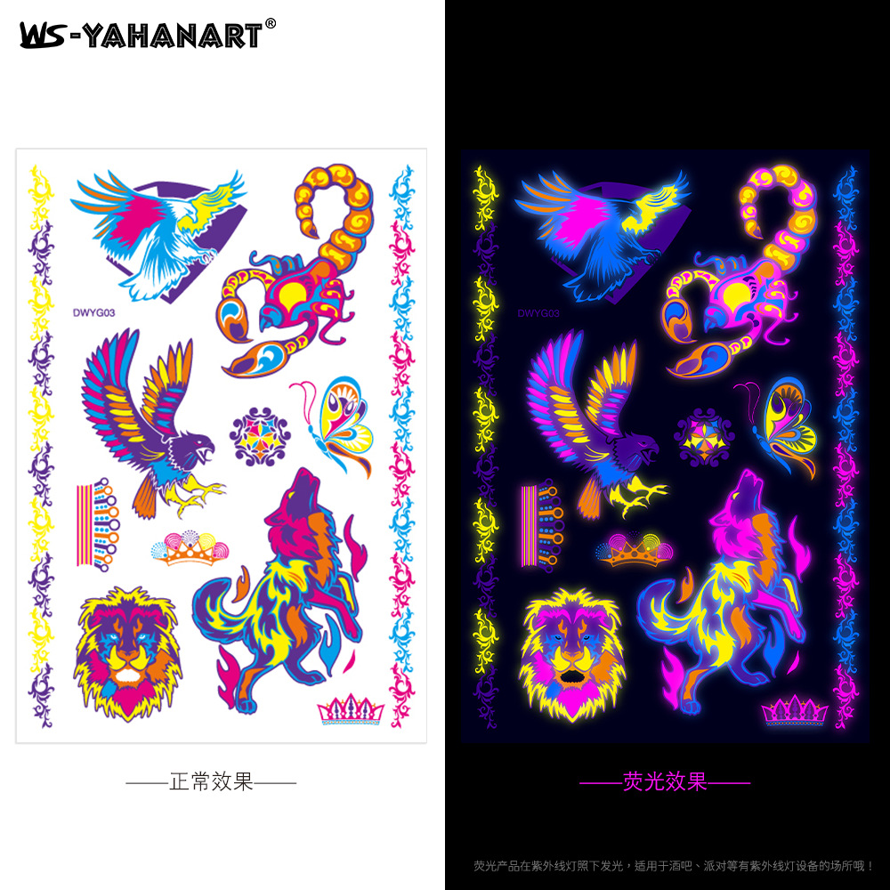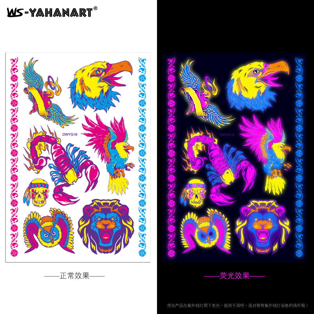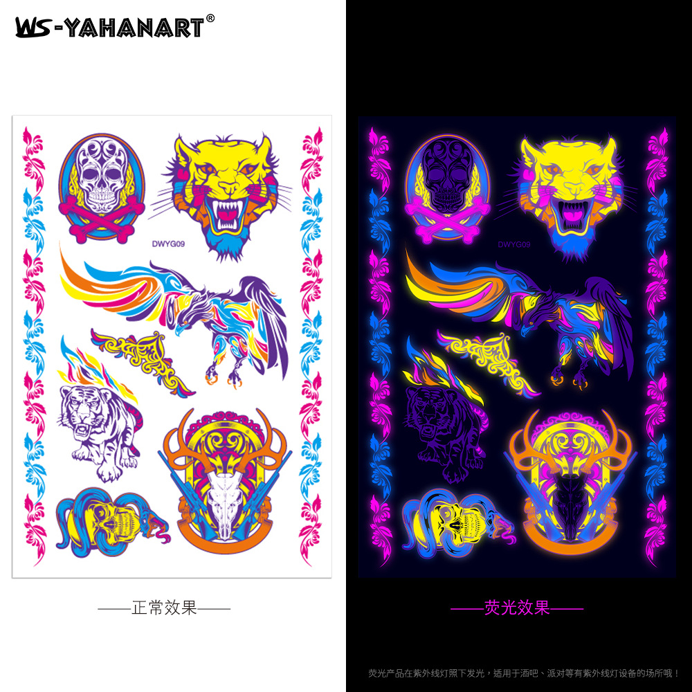 - Pattern: (take 8 photos in a set) Fluorescent face sticker FY001-008 combination set