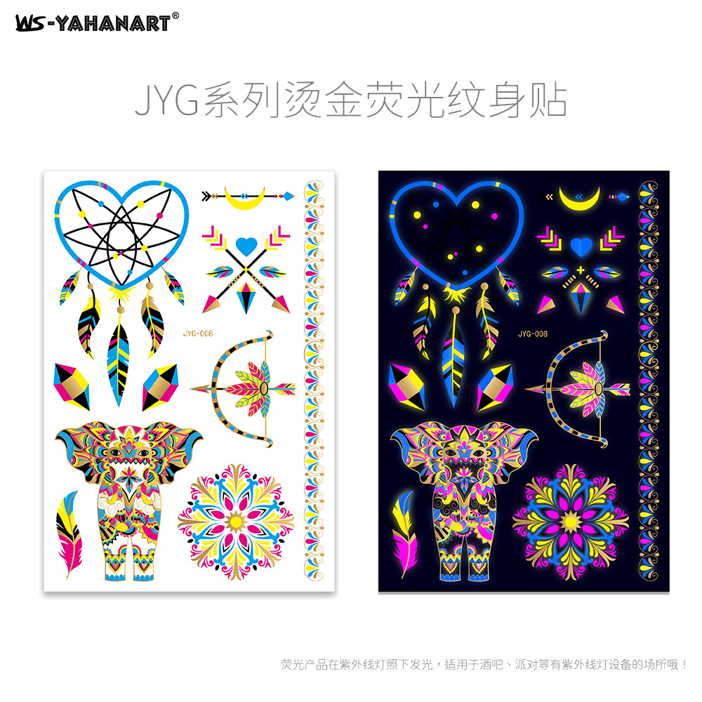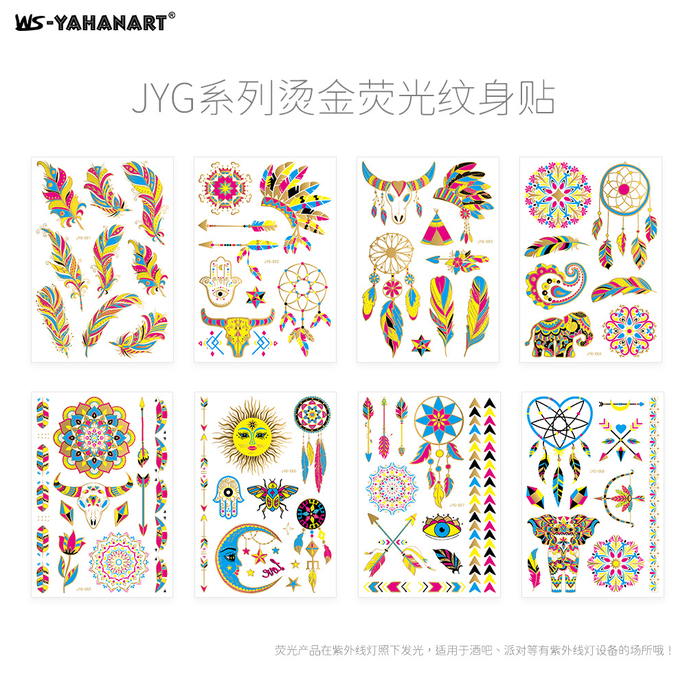 - Pattern: (8 photos in one set) Hot stamping fluorescent JYG001-008 combination set