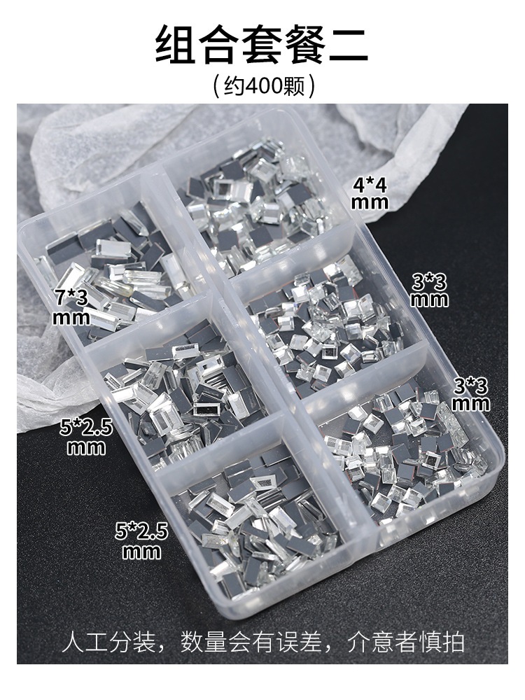 - Specification: Combination of square + rectangle + small round diamonds [about 1400 pieces]