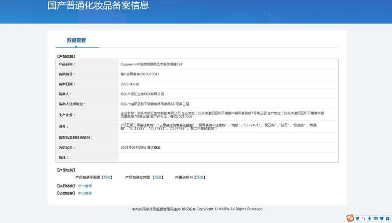 - Non-special cosmetics registration certificate number: Guangdong G makeup network registration number 2023068272