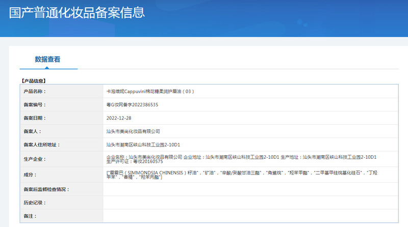 - Non-special cosmetics registration certificate number: Guangdong G makeup network registration number 2022386533