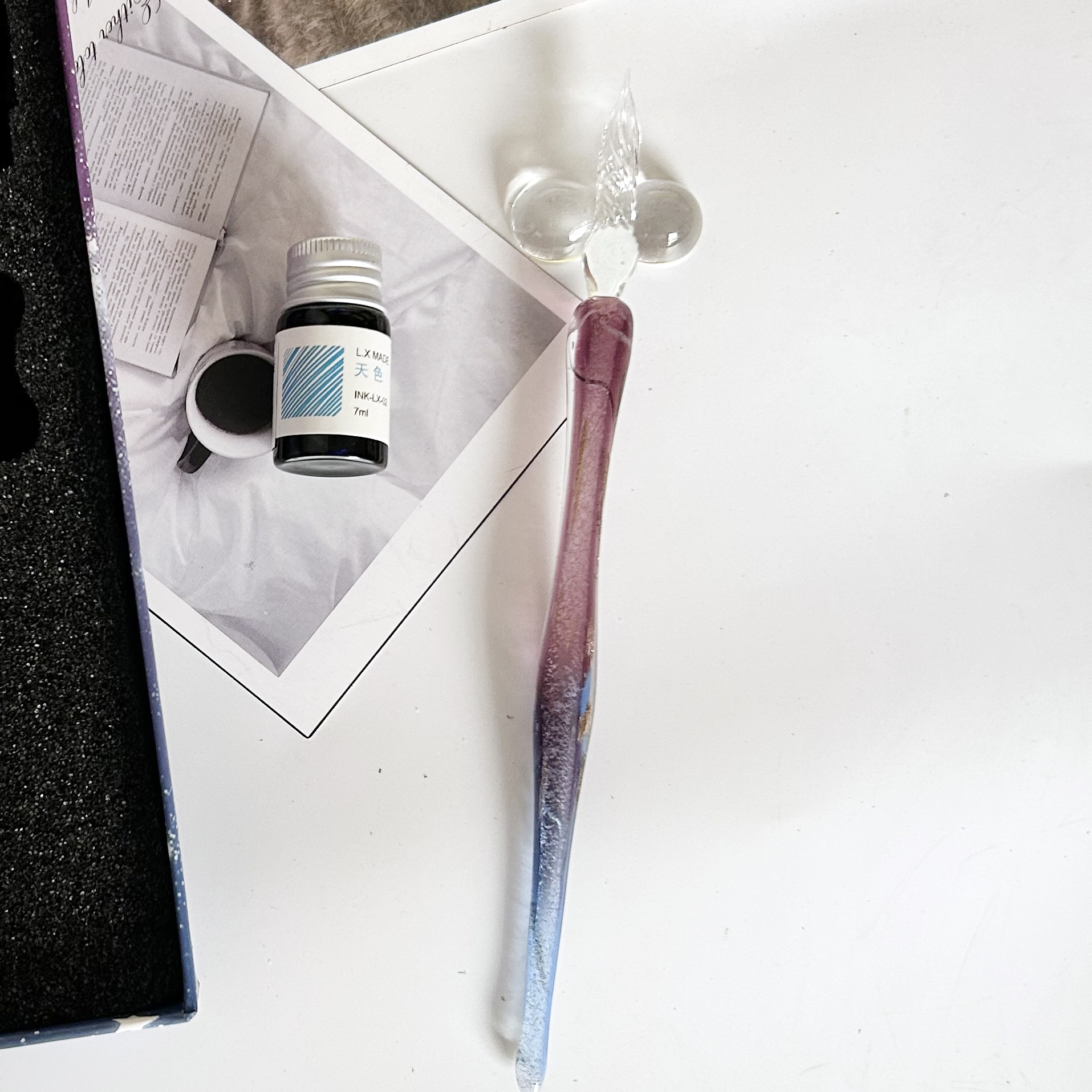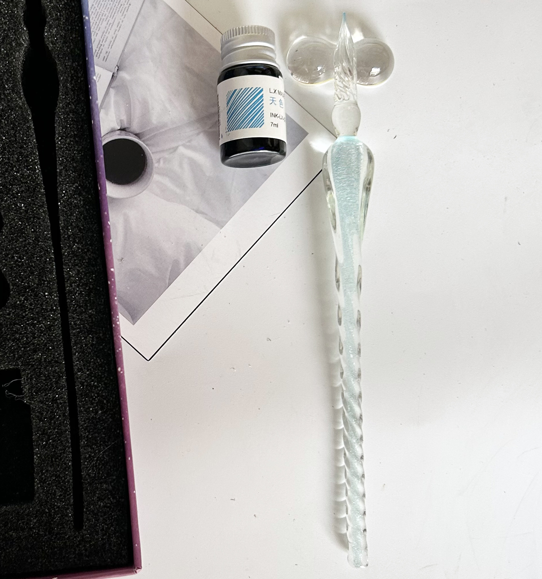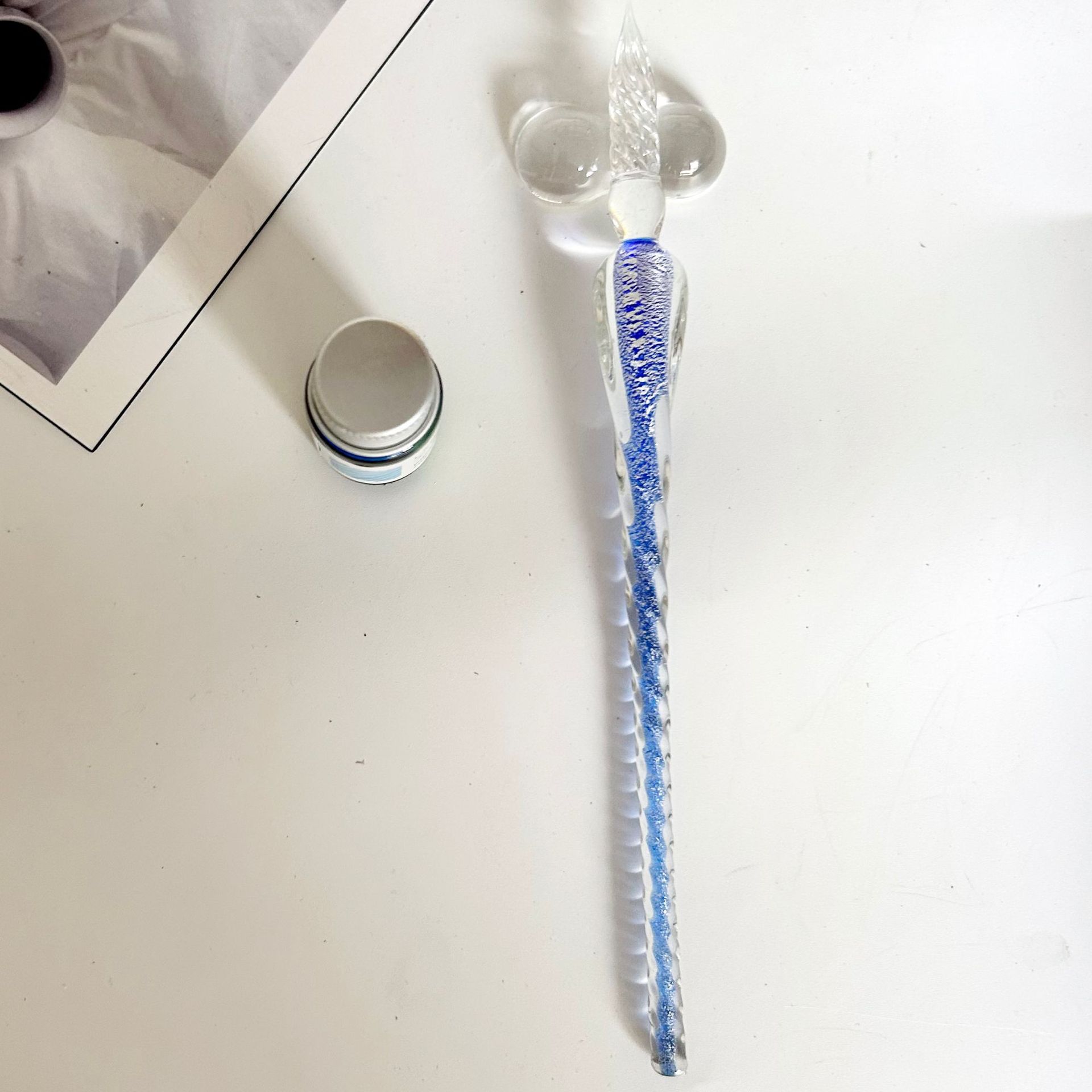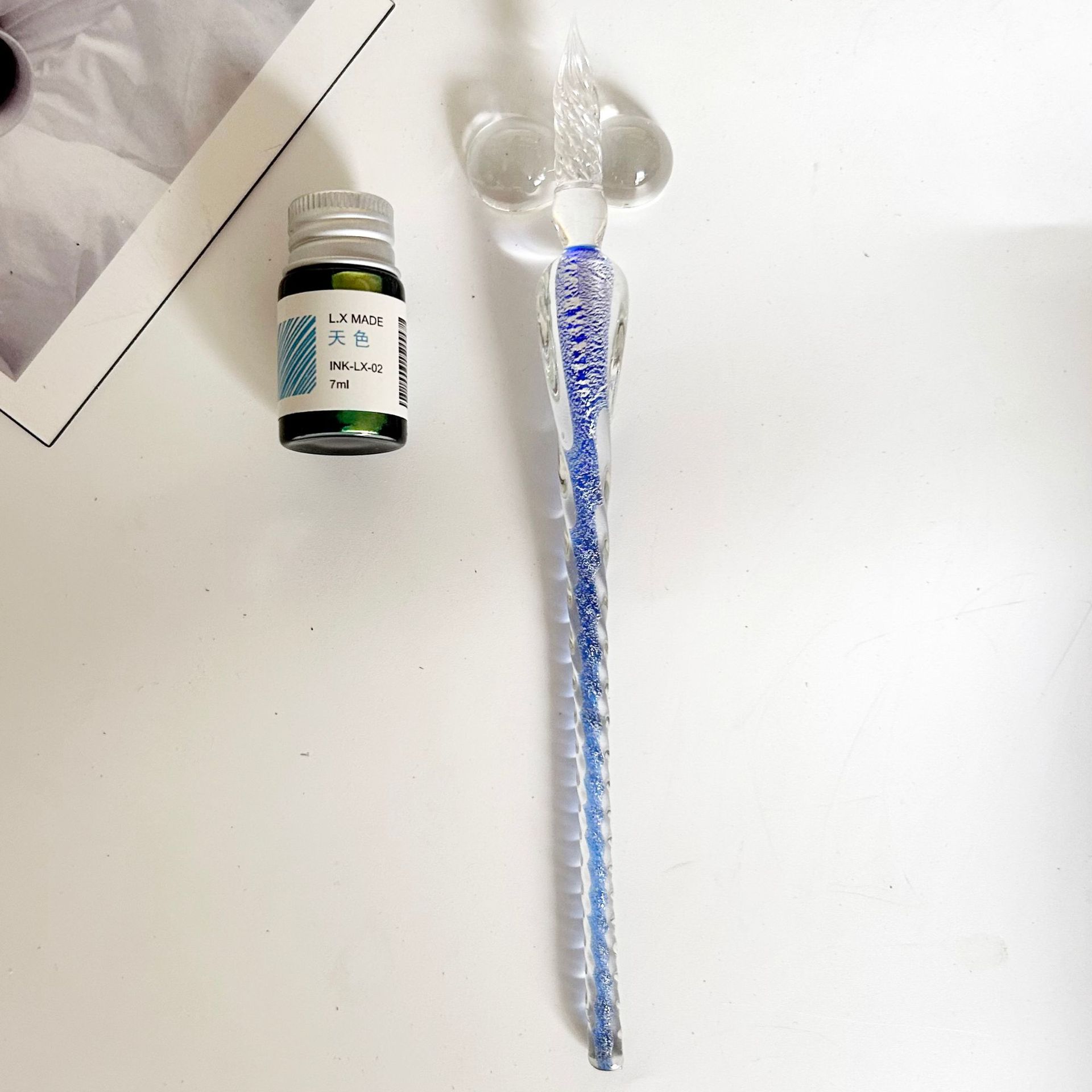 注意:此款玻璃筆蘸墨水即可使用,每次蘸取頭部過半合適。