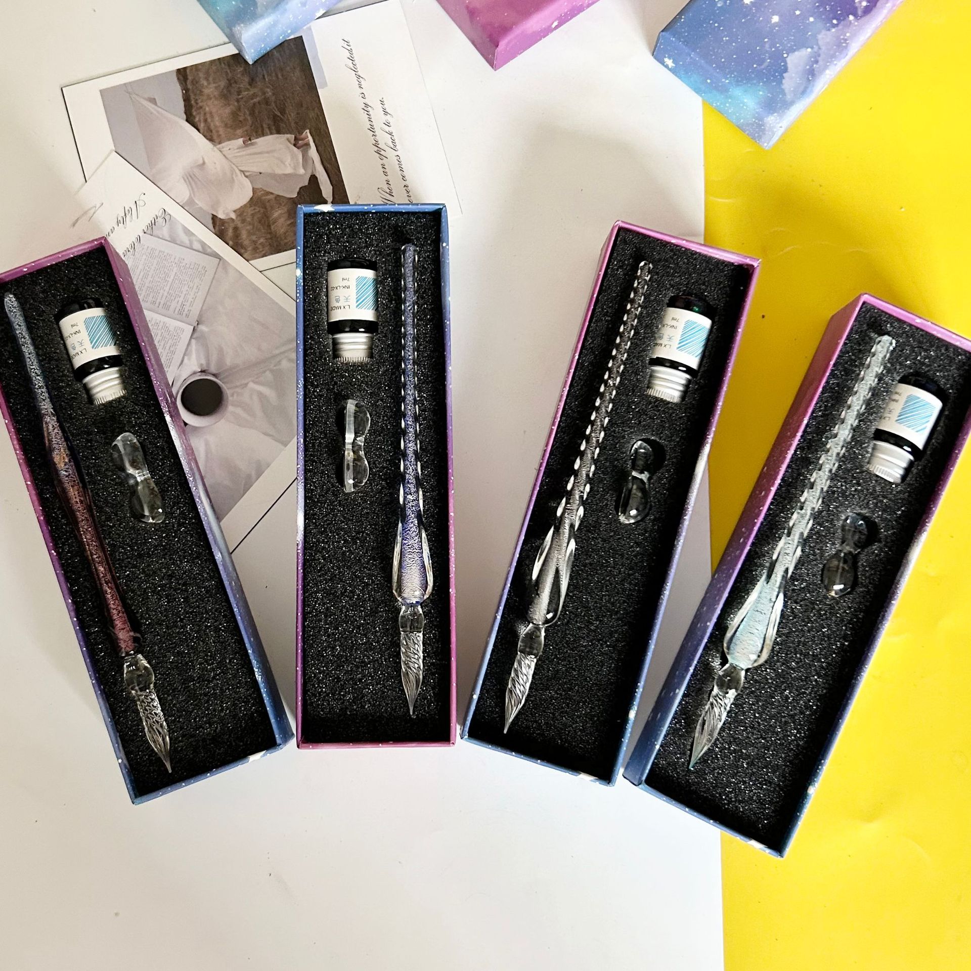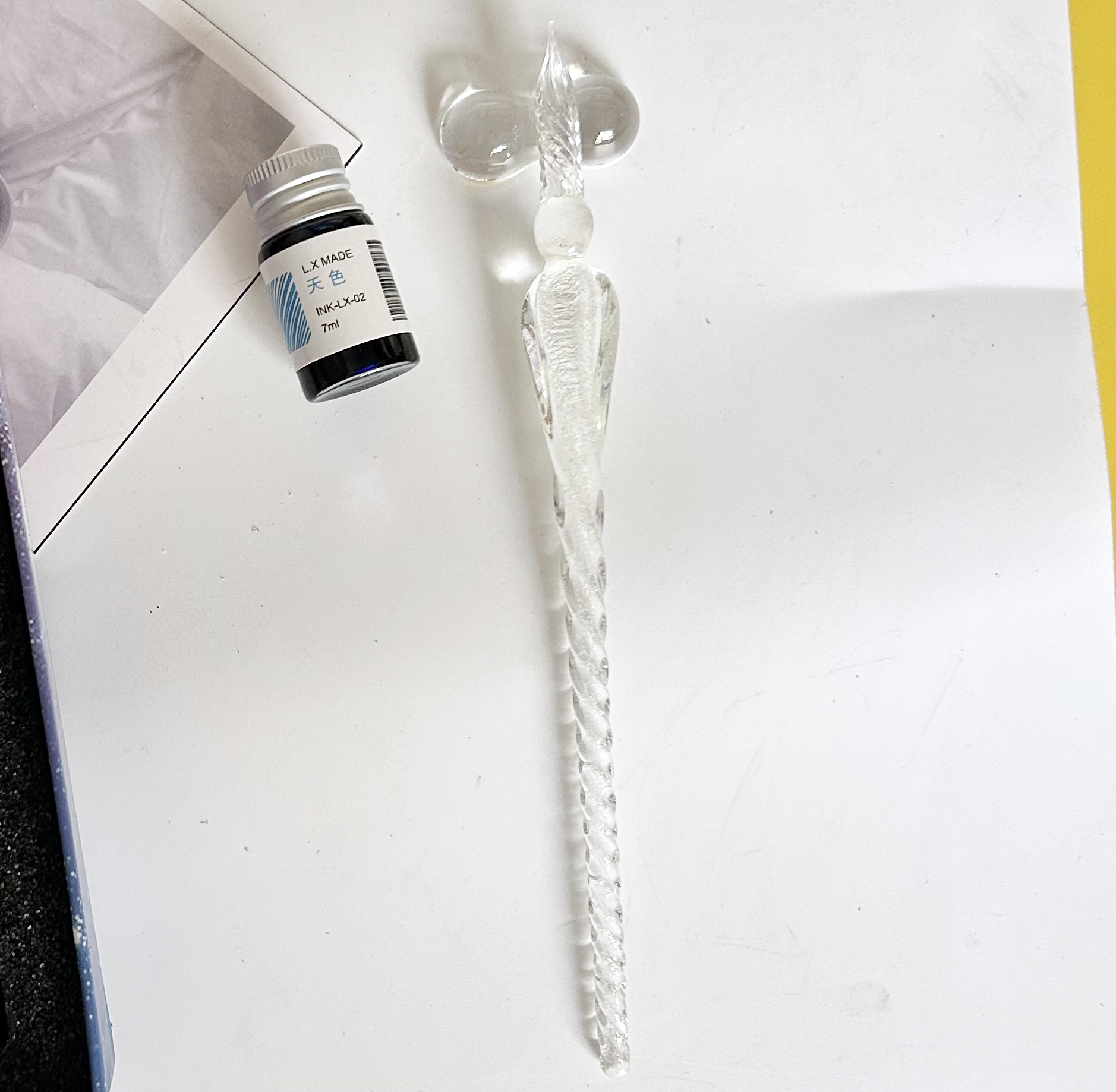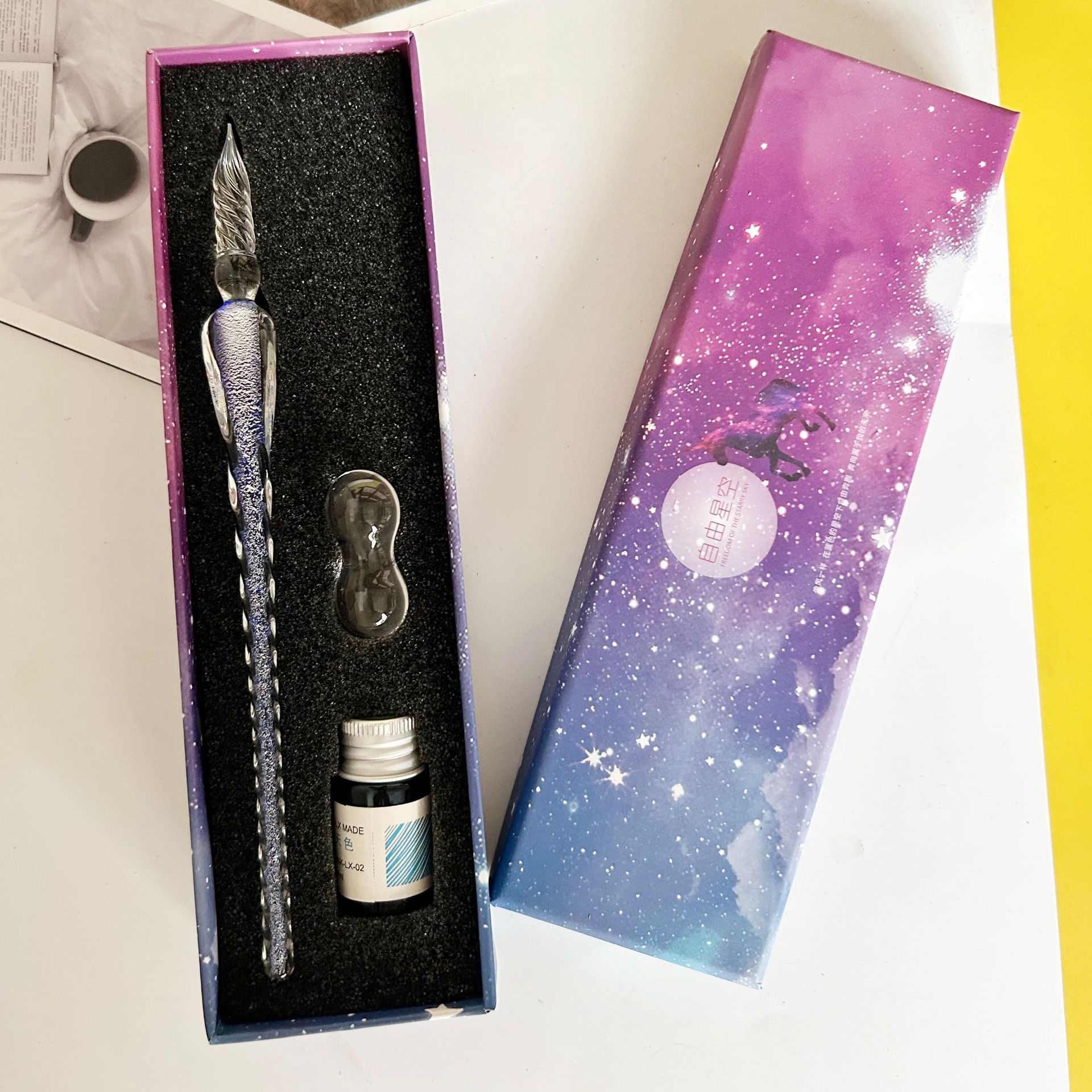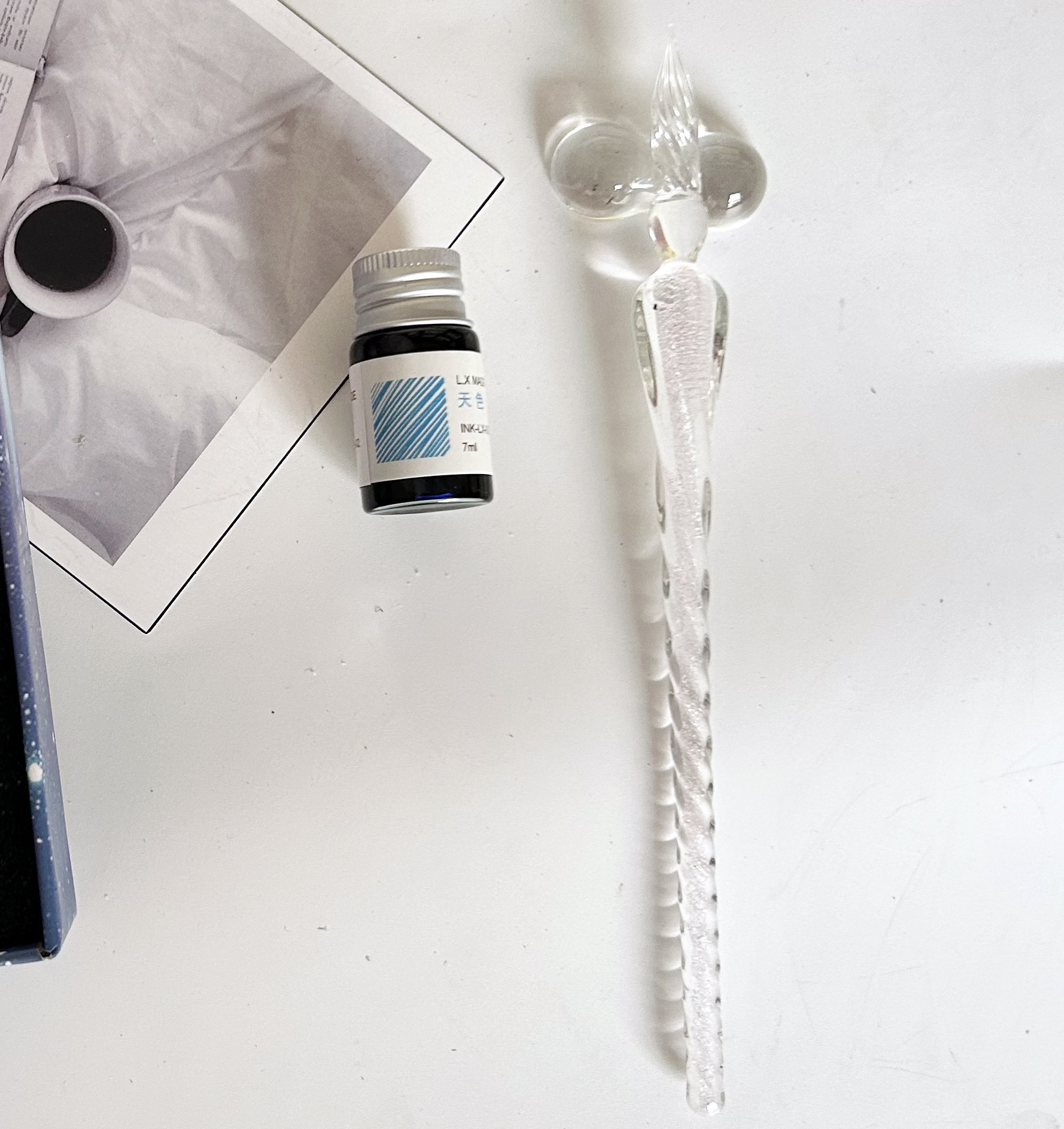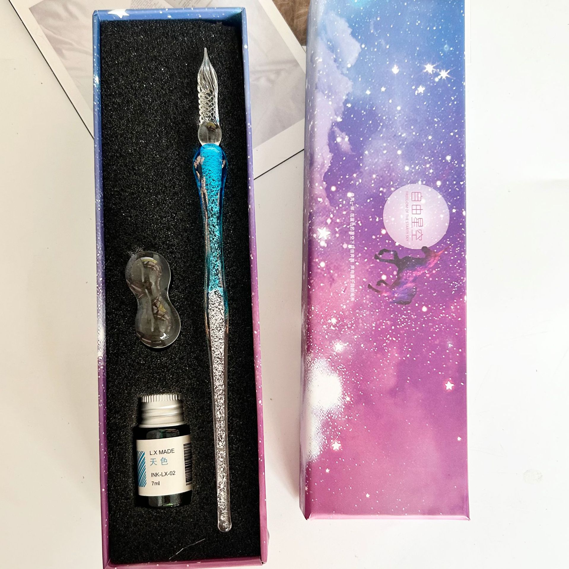 注意:此款玻璃筆蘸墨水即可使用,每次蘸取頭部過半合適。