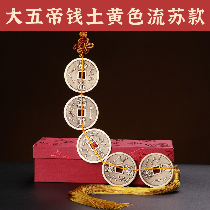 - Specification: Set of Five Great Emperors' Coins with Earthy Yellow Tassels