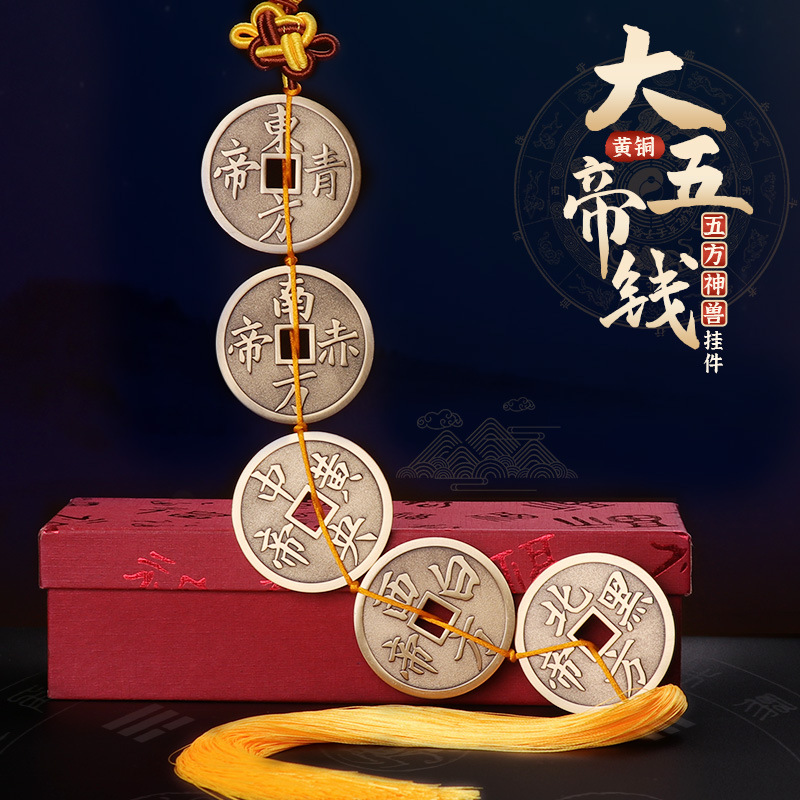 - Specification: Set of Five Great Emperors' Coins with Bright Yellow Tassels