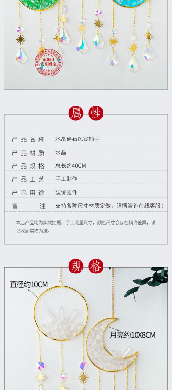 - 種類:白水晶圓形款,白水晶月亮形,電鍍紅圓形款,電鍍藍圓形款,電鍍綠圓形款