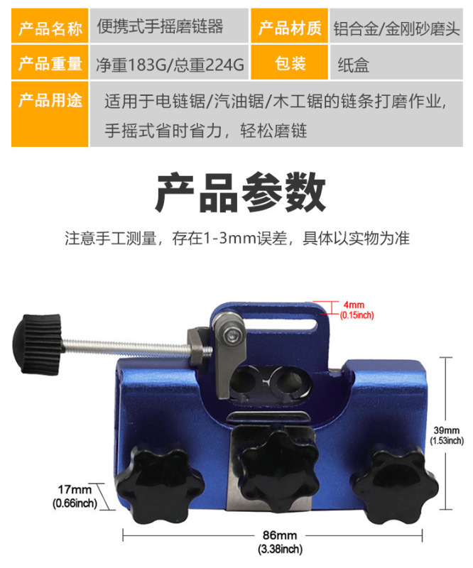 - Model: Portable hand chain grinder (with three grinding heads) - blue