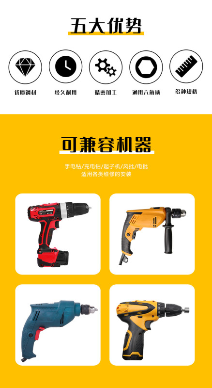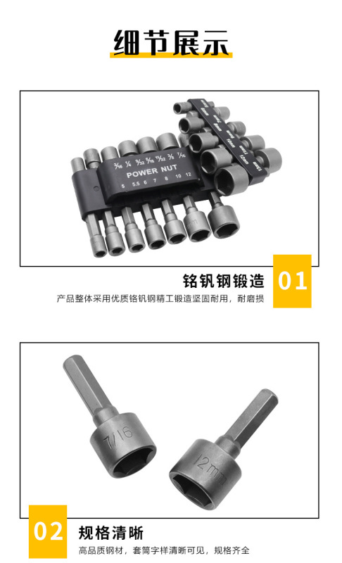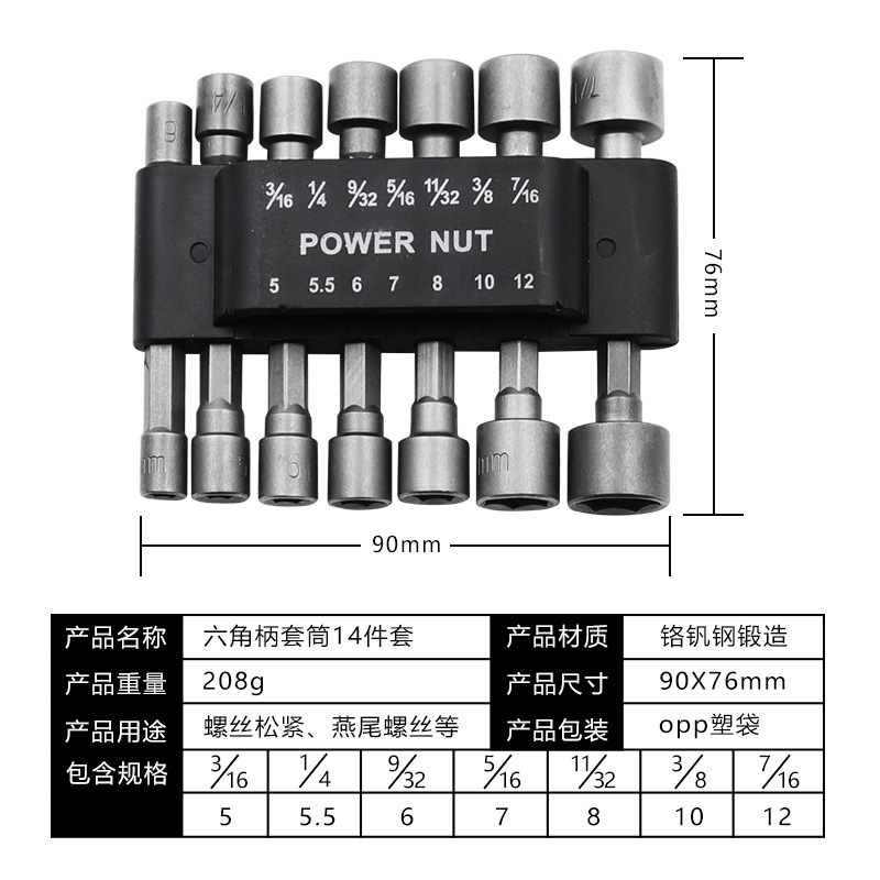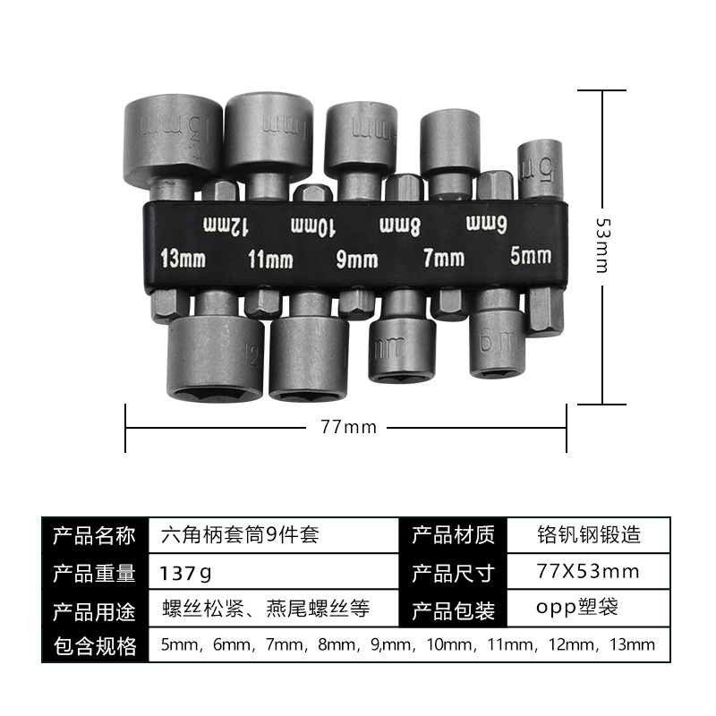 - Model: 9-piece set of hexagonal handle sockets
