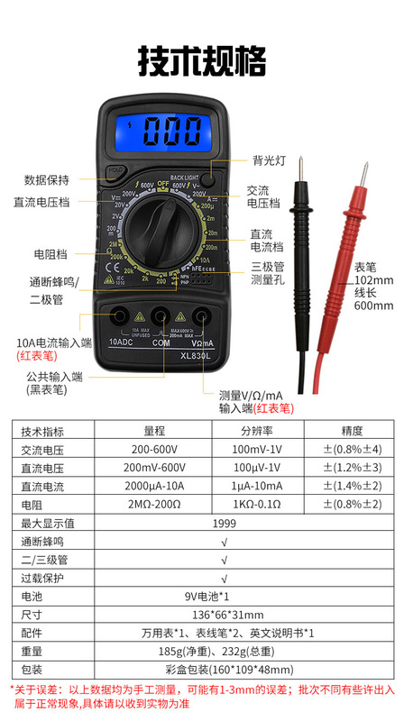 - Model: XL830L (with 9v battery)