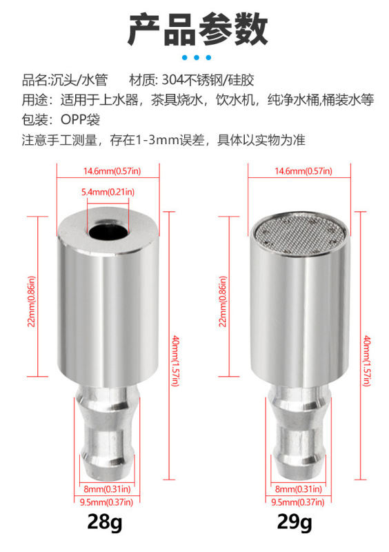 - Model: 1.4m Settling Silicone Tube + 304 Countersunk Mesh