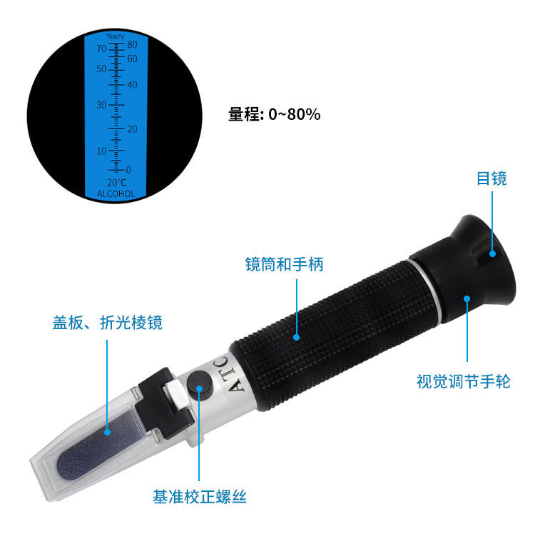 - Specifications: Handheld Refractometer Alcohol Meter Analyzer 0-80%