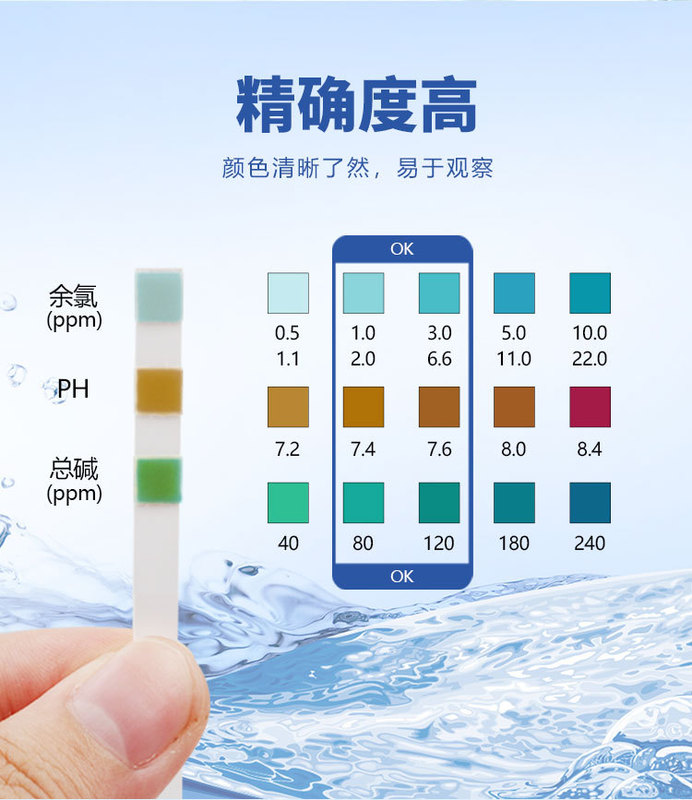 - Applicable Range: pH Range: 6.8~8.4. Chlorine Range: 0-10. Total Hardness Range: 0-240.