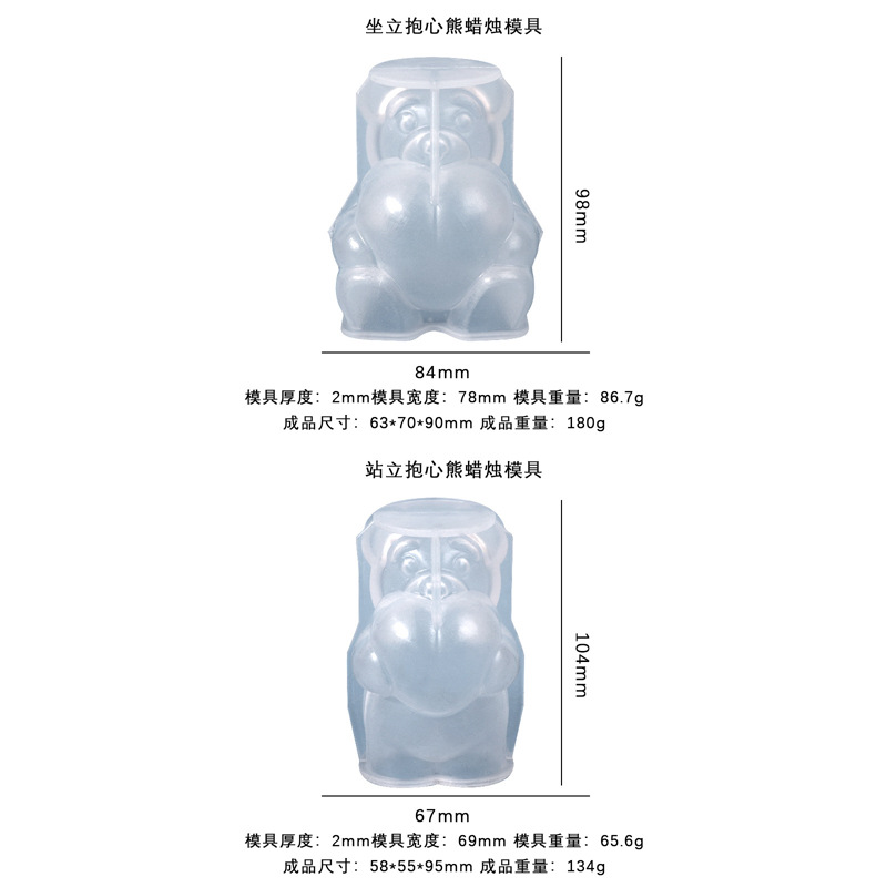 - Specification: Standing Heart Bear Silicone Mold