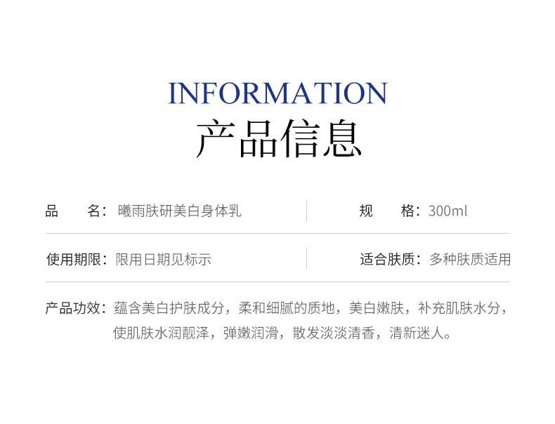 - Product Specification: Xiyu Skin Research Whitening Body Lotion (New) 300ml