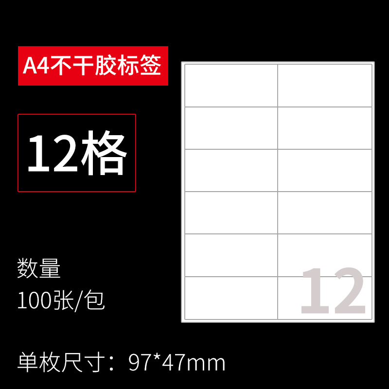 - Specification: 12-Cell (97*47mm) 100 Sheets