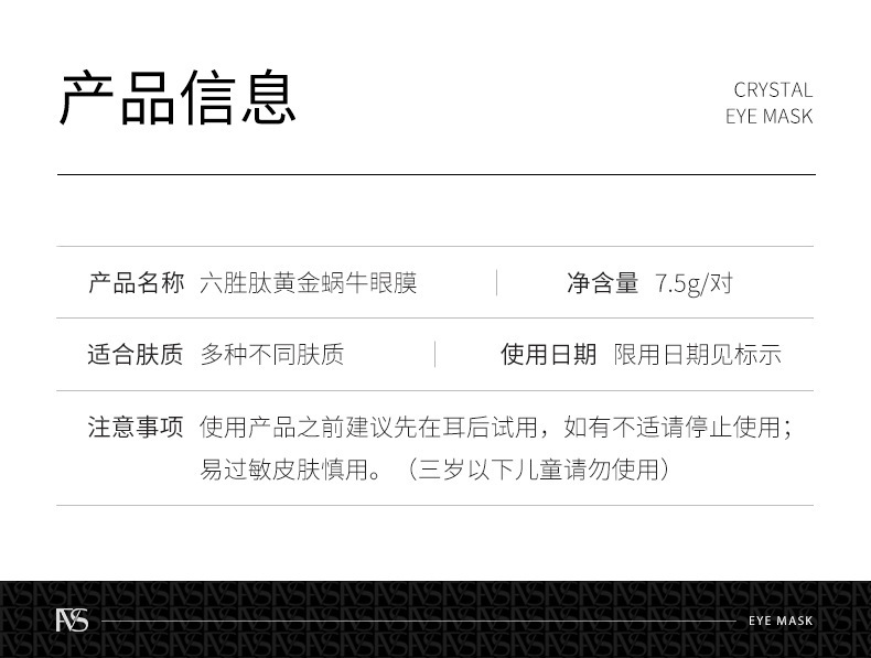 - Product specifications: Vanfels Six-Peptide Gold Snail Eye Mask 7.5g/pair