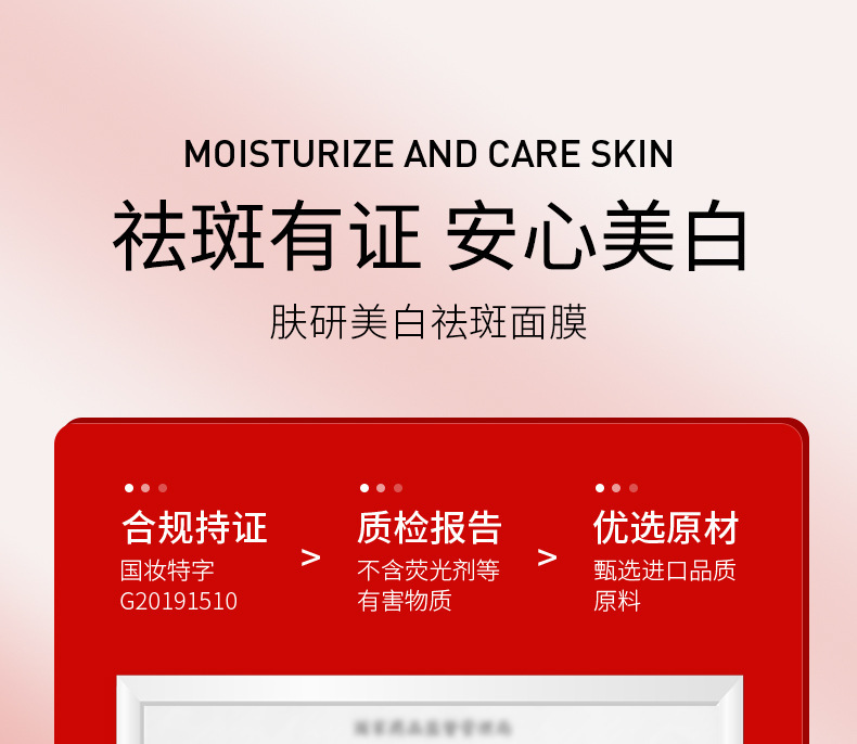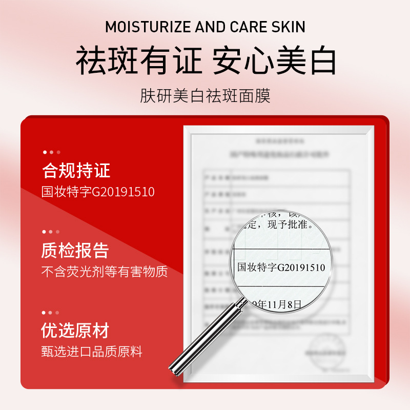 - Special Use Cosmetics Certificate Number: National Cosmetic Special Character G20191510