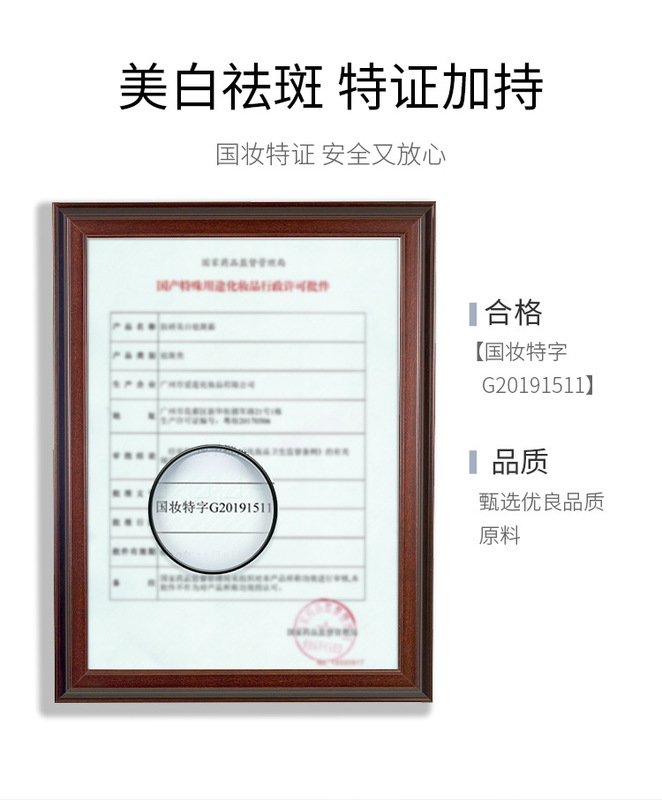 - Special Use Cosmetics License Number: National Cosmetics Special Character G20191511
