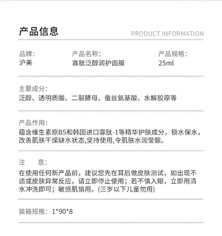 - Product specification: Huamei Vitamin B5 Hydrating Mask 25ml