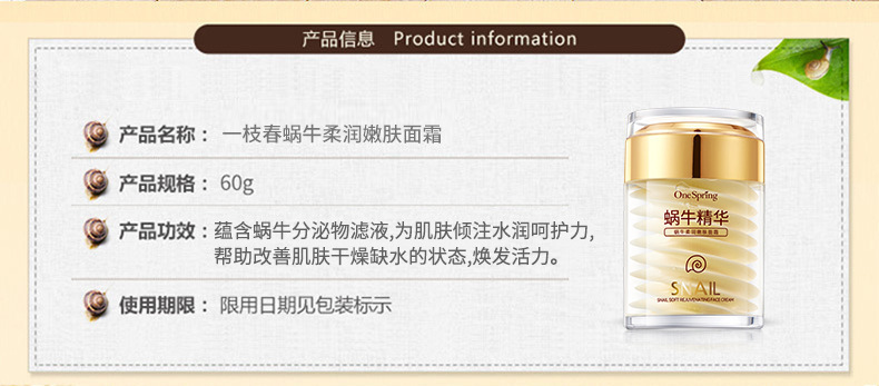 - Product Specification: Yizhichun Snail Softening & Nourishing Face Cream (New) 60g