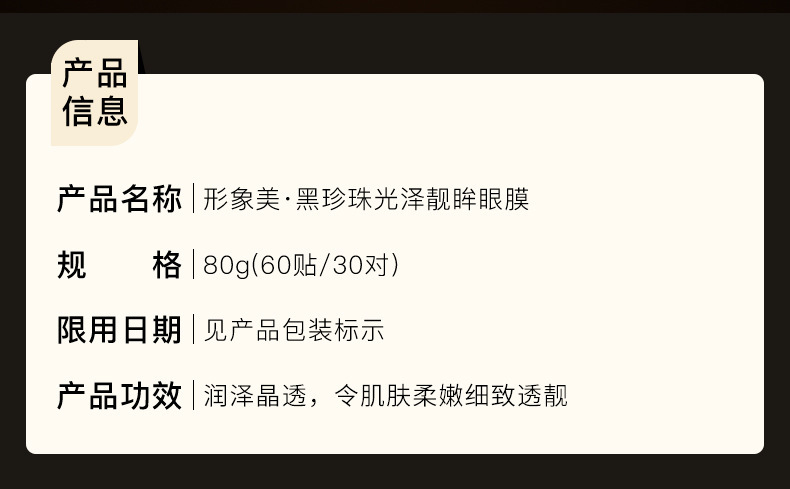 - Product specifications: Image Beauty Gold Eye Mask/30 pairs